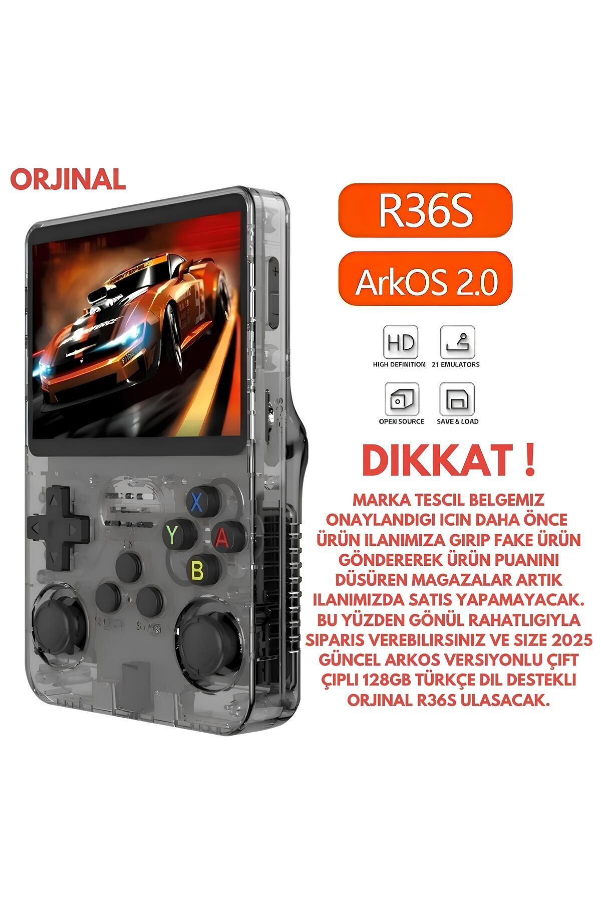 Kutu İçeriği: 1 Adet R36s Oyun Konsolu, 1 Adet Type-C Şarj Kablosu, 1 Adet Ekran Koruyucu, 1 Adet Kullanım Kılavuzu