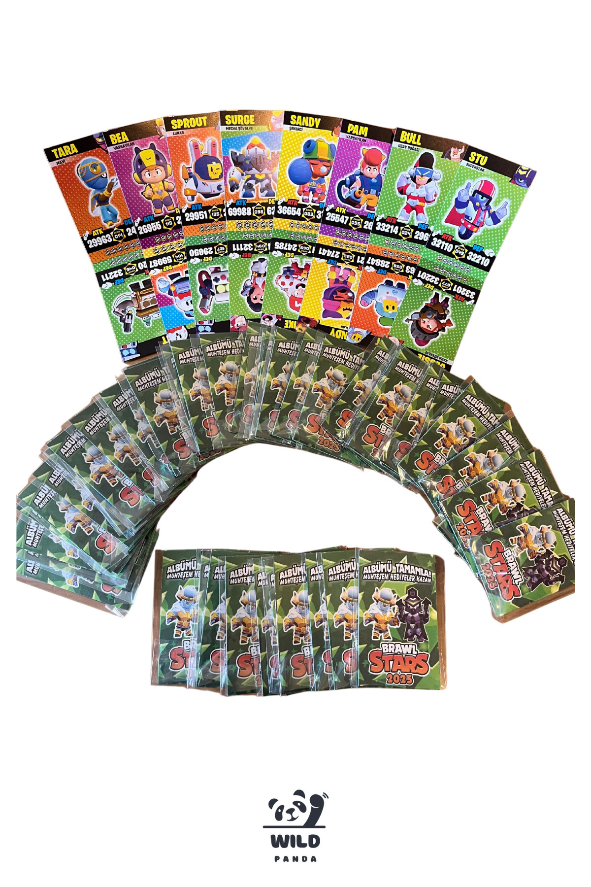 - Brawl Stars 2025 Oyuncu Kartları, 50 poşette toplam 100 adet devasa kutusuz oyun kartı içerir.