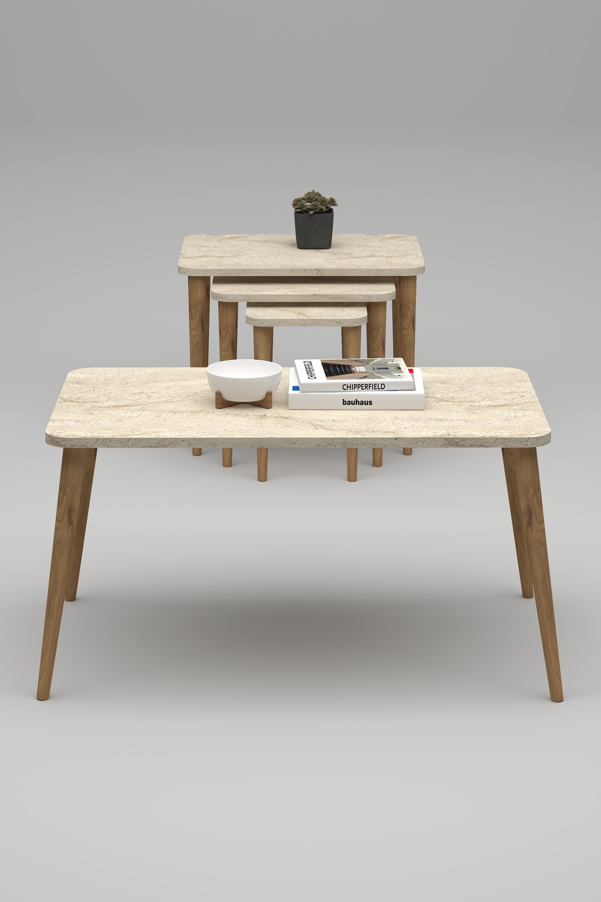 Ürün 3'lü Zigon Sehpa ve Orta Sehpa Setten Oluşmaktadır.