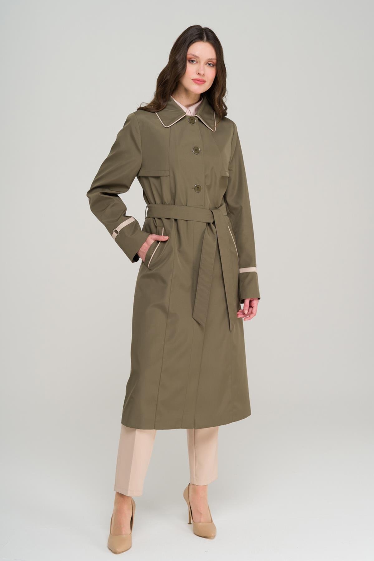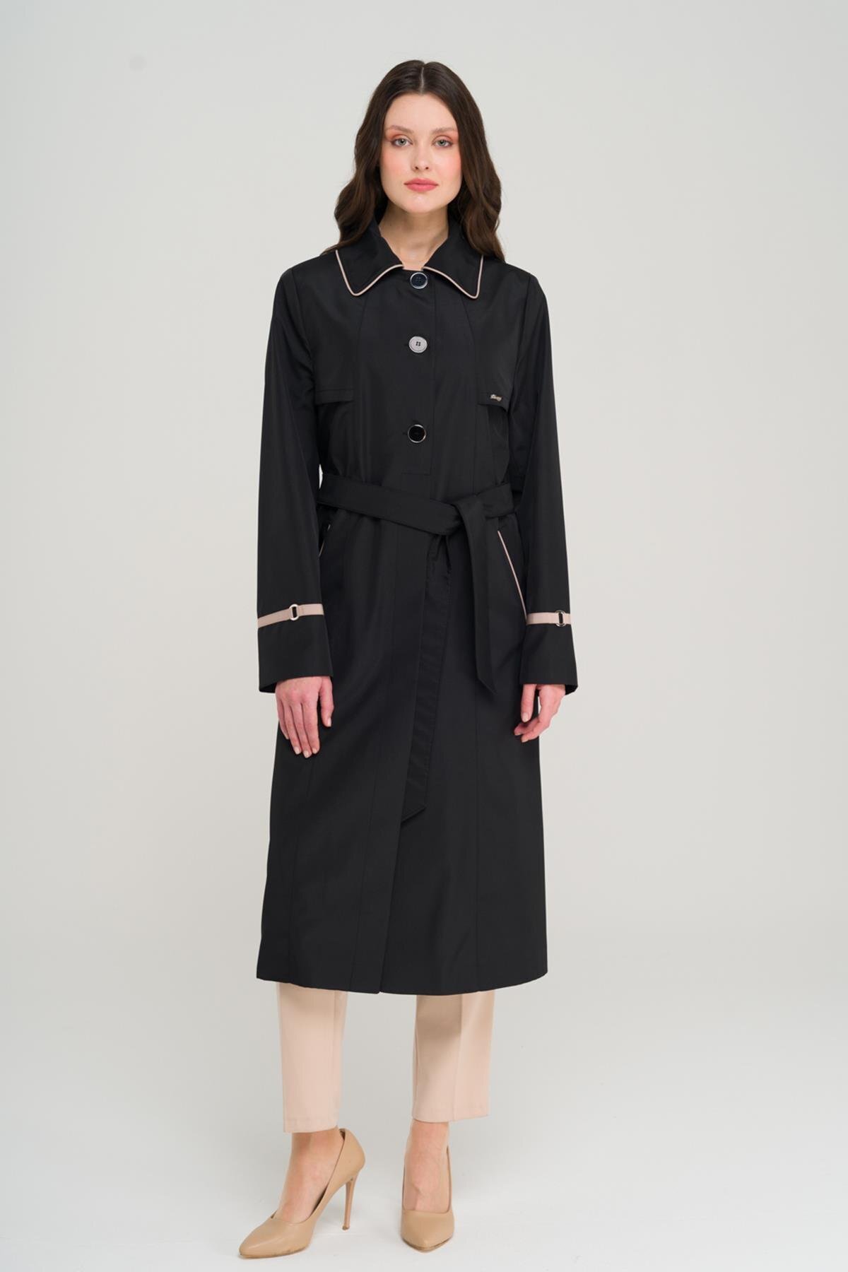 Gömlek Yaka Biye ve Pelerin Detaylı Büyük Beden Trençkot SİYAH 4301