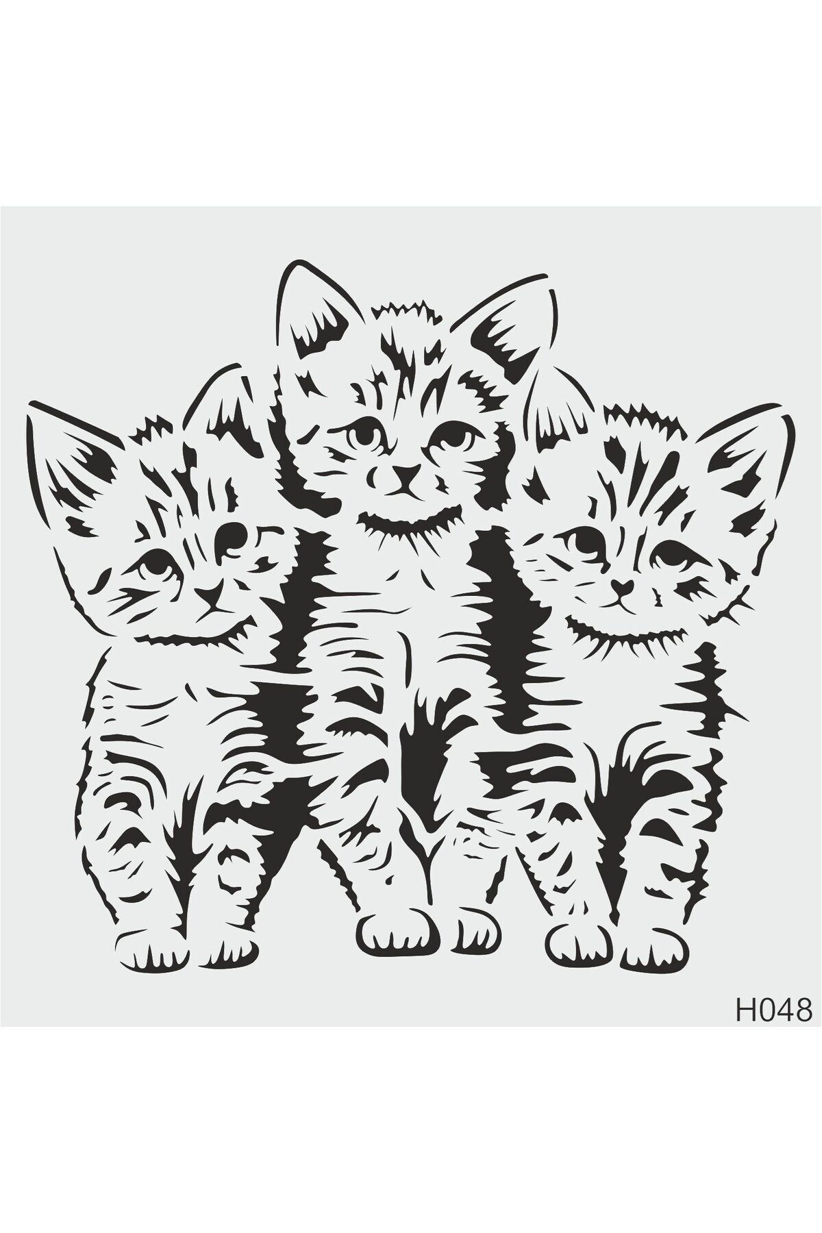 Stencil Tasarım H048 Kediler, Ahşap, Duvar, Cam, Kumaş Boyama Şablonları
