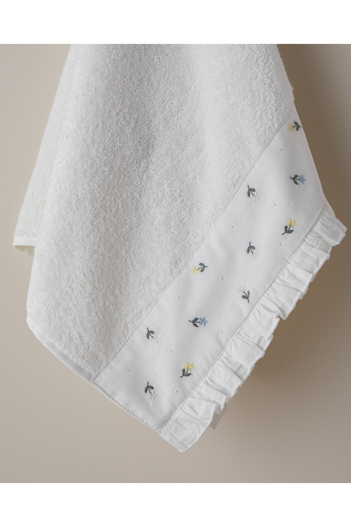 Floral Garden Pamuk Nakışlı Yüz Havlusu 50x80 cm Ekru