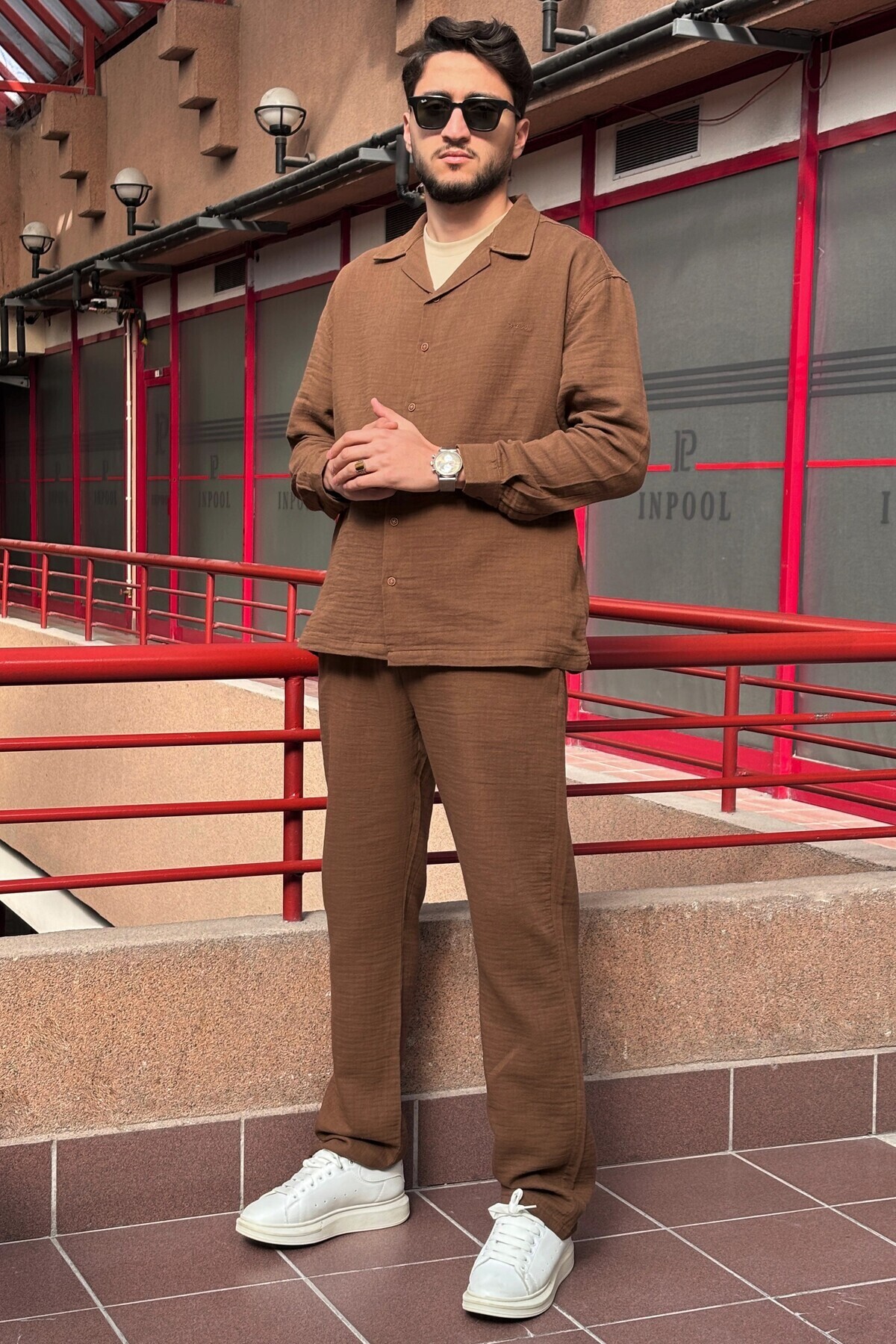 Müslin dokuma, yazlık&baharlık, 100% Pamuk, Oversize Gömlek-Pantolon Takım G11-295. Mankenimiz 185 Cm boy ve 82 Kg ölçülerinde olup L beden giymektedir.