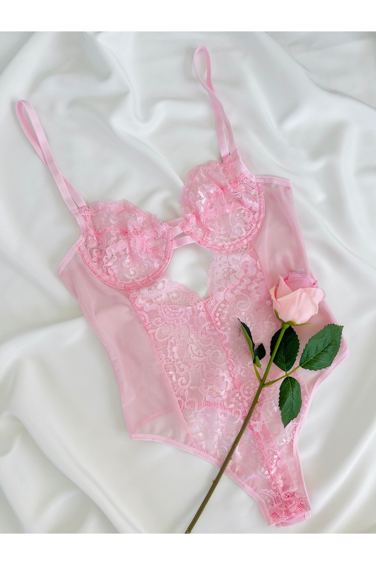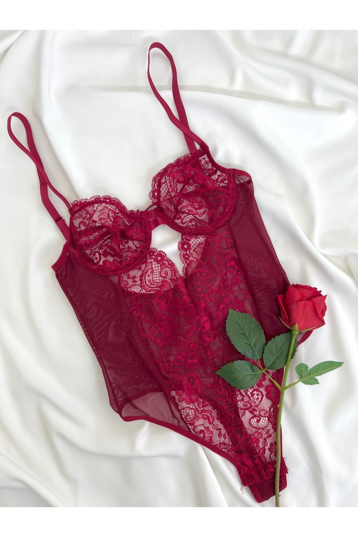 Arinda Almira çiçek desenli bodysuit yumuşak ve esnek tül üzerine romantik çiçek desenli dantel işlemesi, kaliteli işçiliği, göz alıcı görünüşü, balenli modeli ile stilinize çarpıcı bir görünüm kazandırıp göğüslerinize harika bir form verir