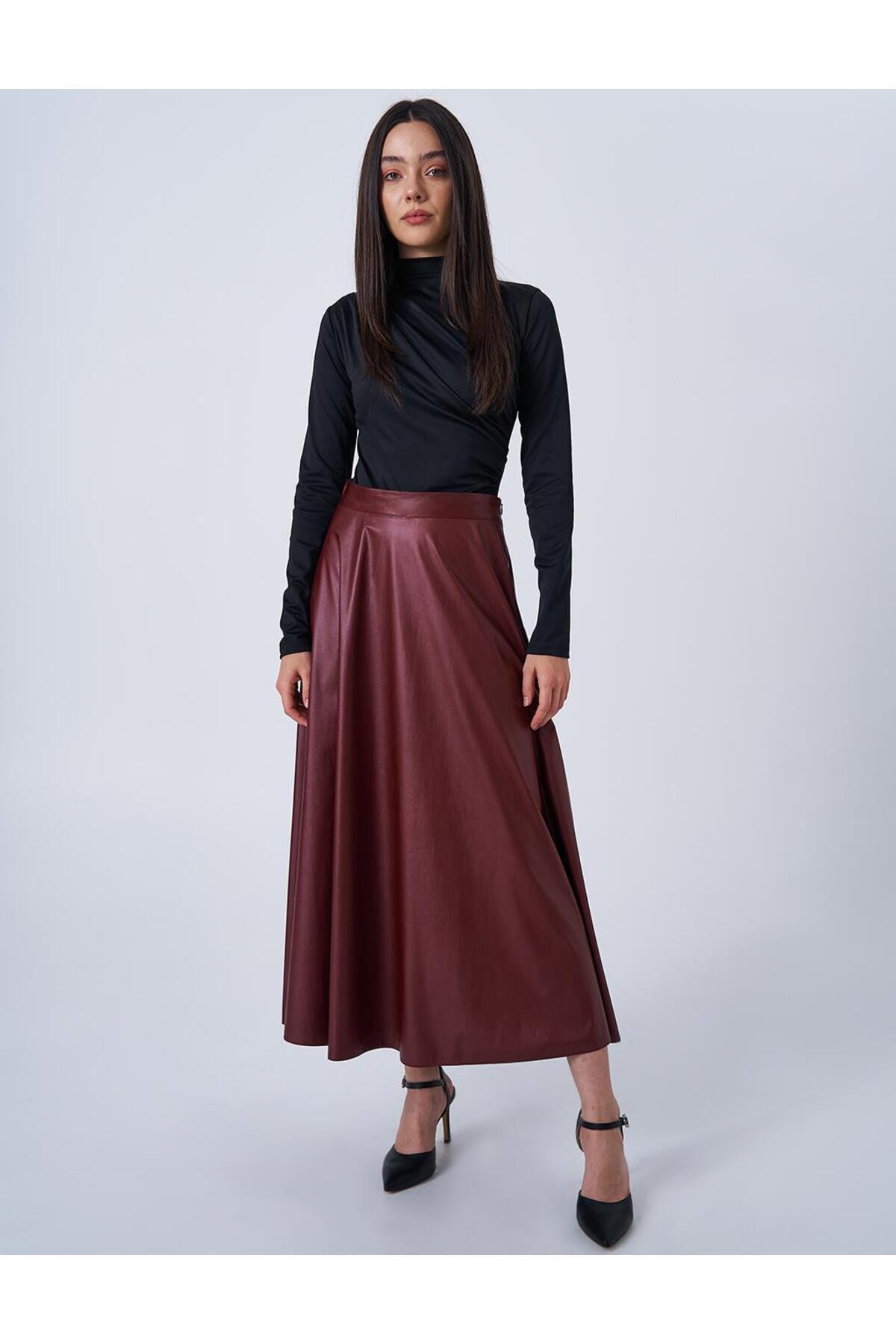 Parlak Görünümlü Kloş Etek Bordo