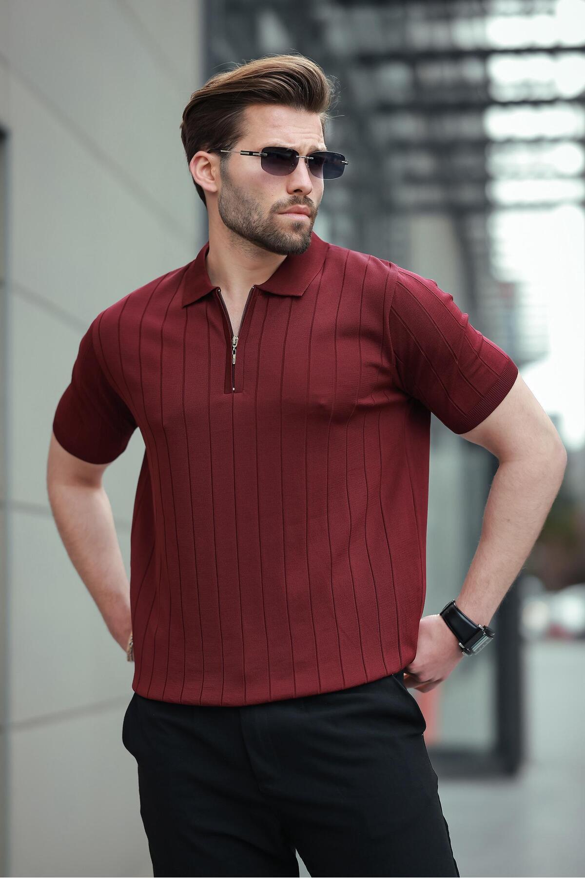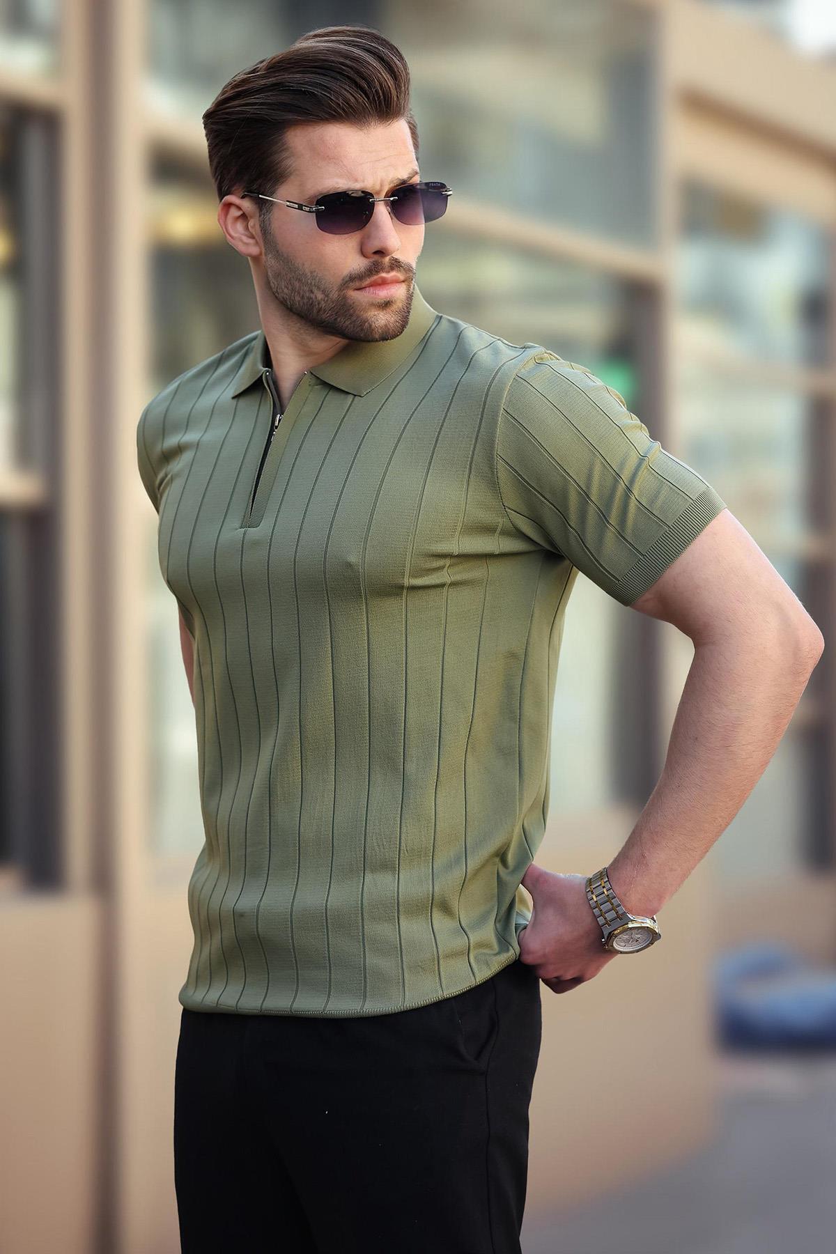Beyaz Polo Yaka Fermuarlı Erkek T-shirt E7298