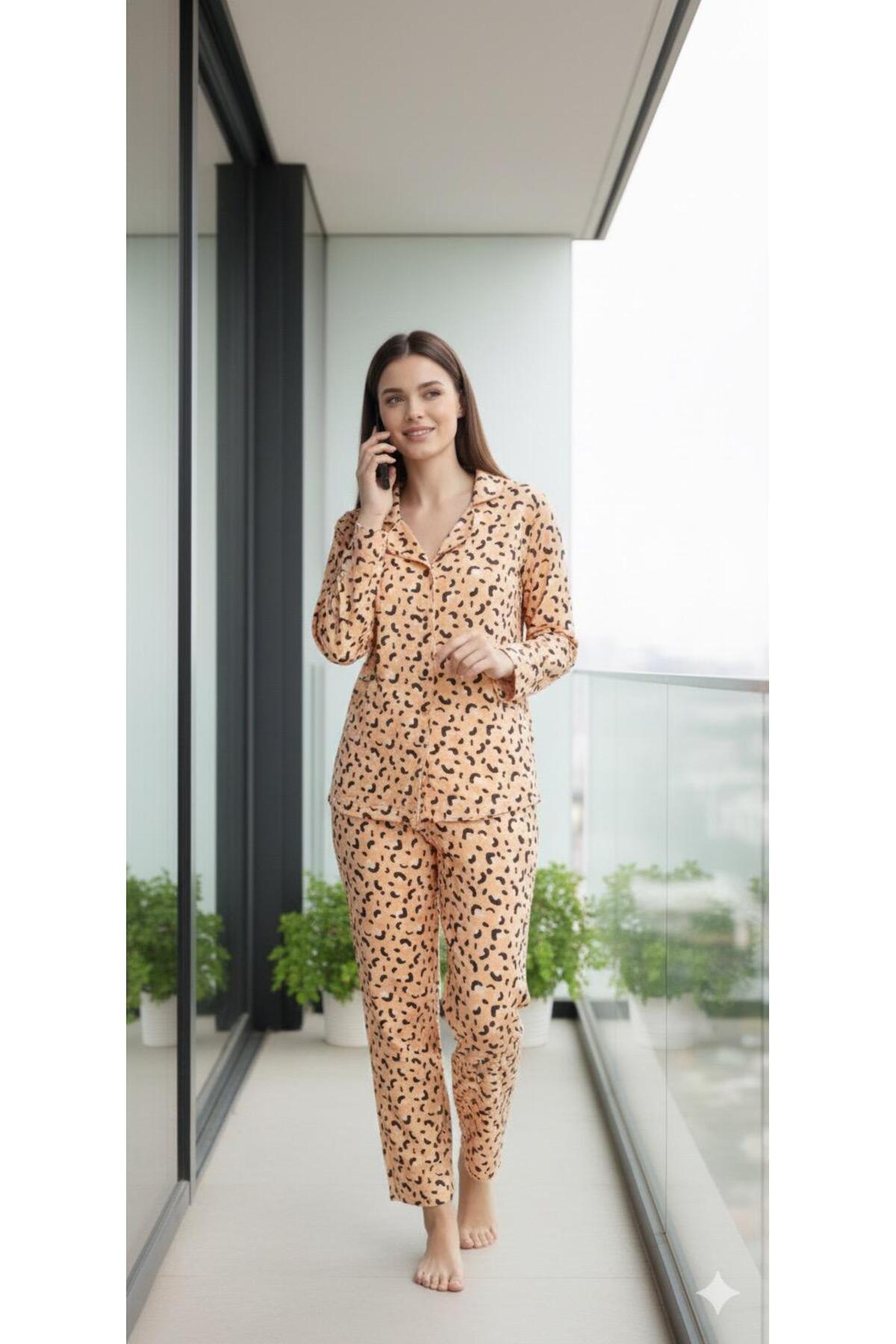 - Leopar desenli uzun kollu pijama takımı, şıklığı ve rahatlığı bir arada sunar.