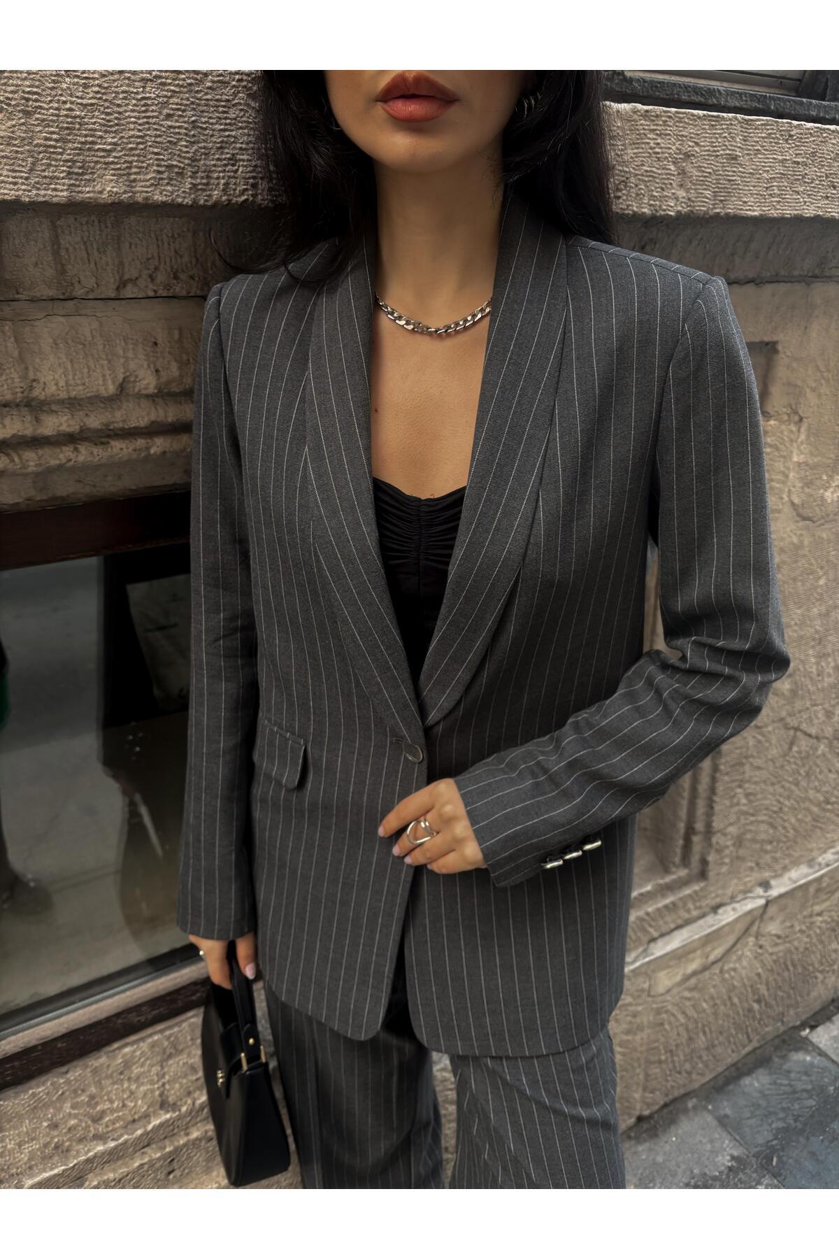 - Şal yaka detayı ile sofistike bir hava katarken çizgili deseniyle trendleri takip eden tarzınızı yansıtır.