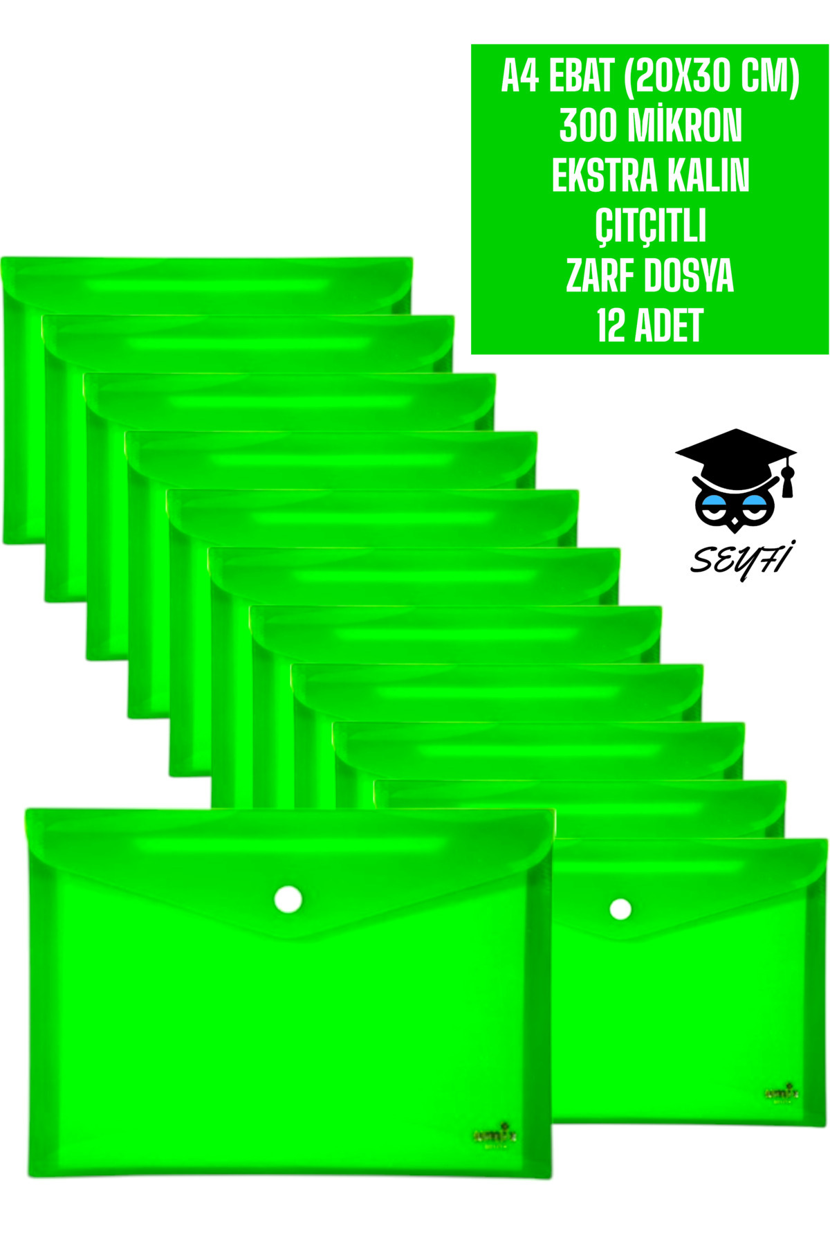 • A4 EBAT (20X30 CM) 300 MİKRON EKSTRA KALIN PLASTİK ÇITÇITLI ZARF DOSYA 12 ADET