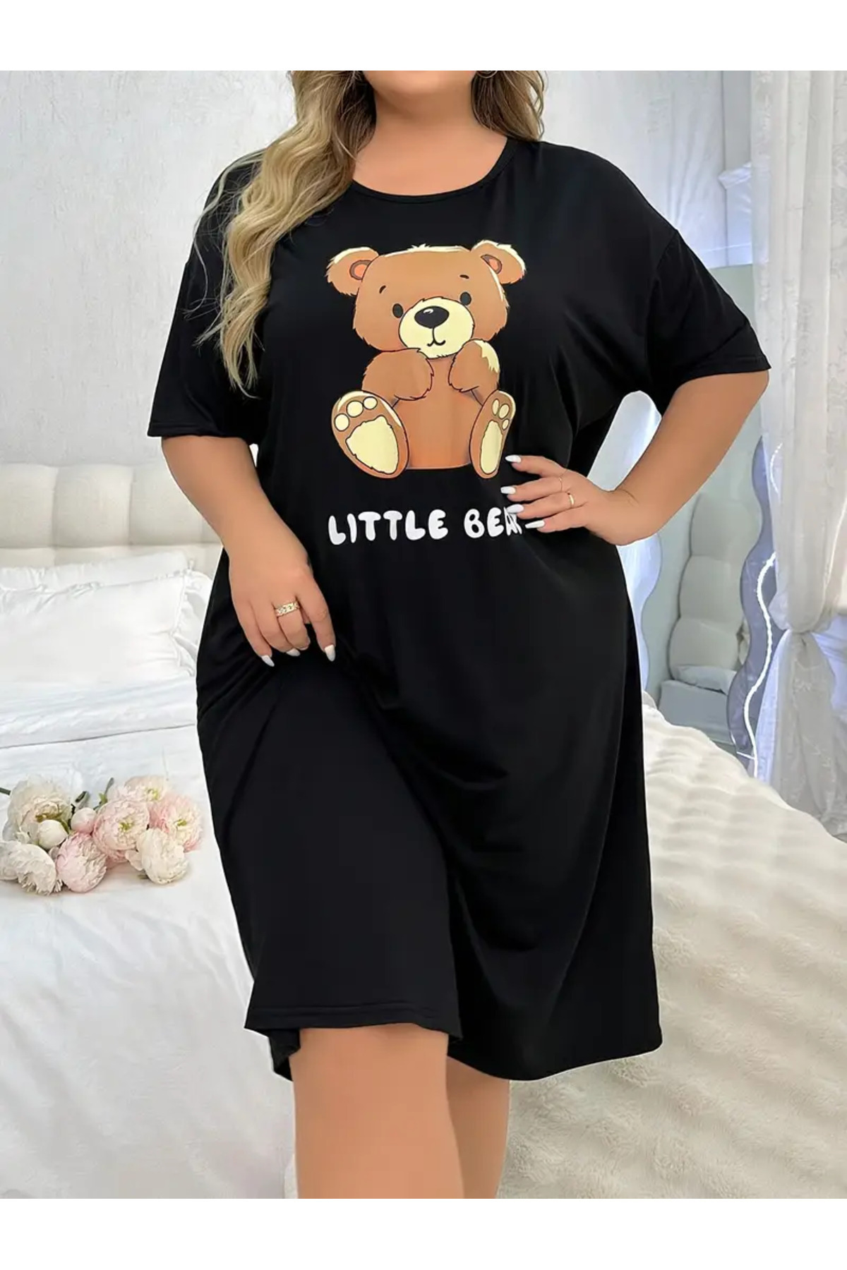 • - Siyah renk seçeneğiyle şıklığı ve zarafeti ön plana çıkaran büyük beden kadın kısa kollu bisiklet yaka t-shirt elbise gecelik, her gardıropta yerini almayı hak ediyor.