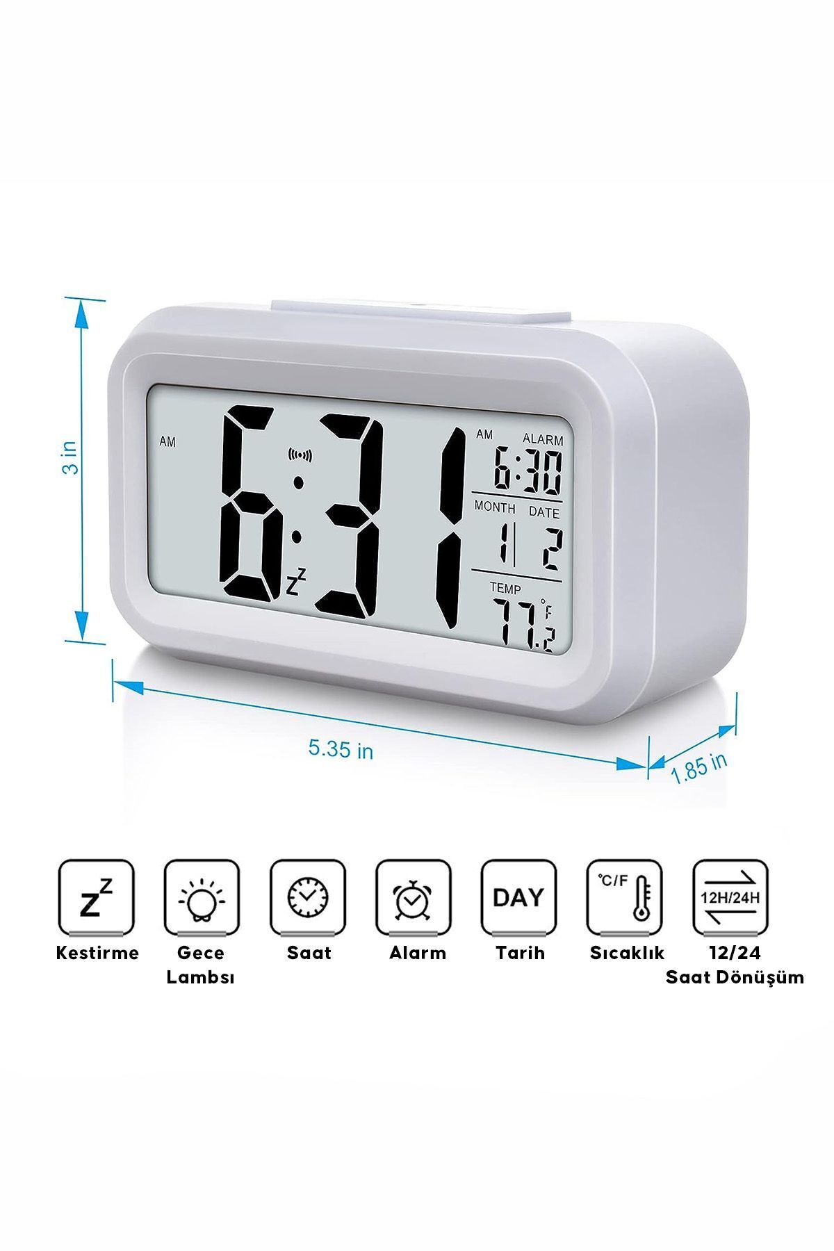 Dijital Masa Saati Fotoselli Alarmlı Işıklı Termometre Takvim Beyaz Renk