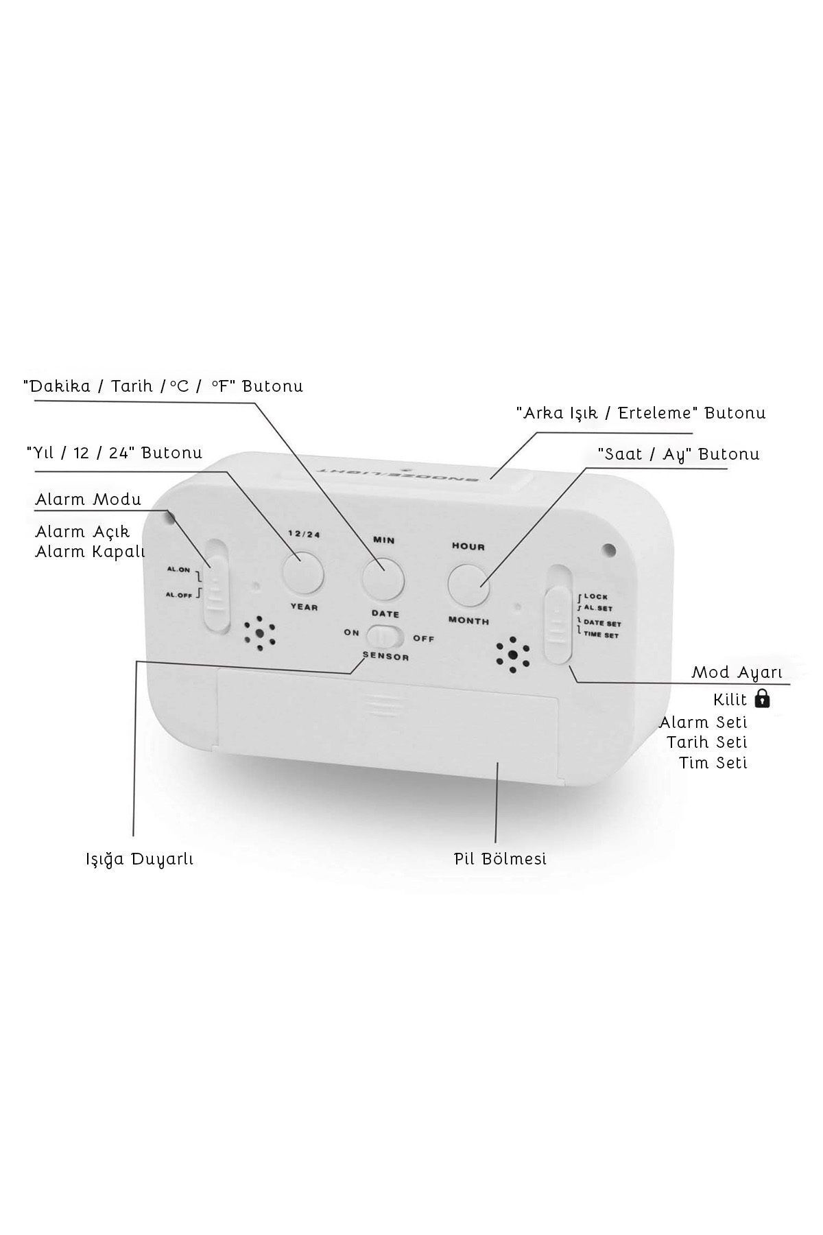 • Alarm özelliği ile de uyanmanıza yardımcı olacak saat aynı zamanda tarih ve derece ayarları da bulunmaktadır.