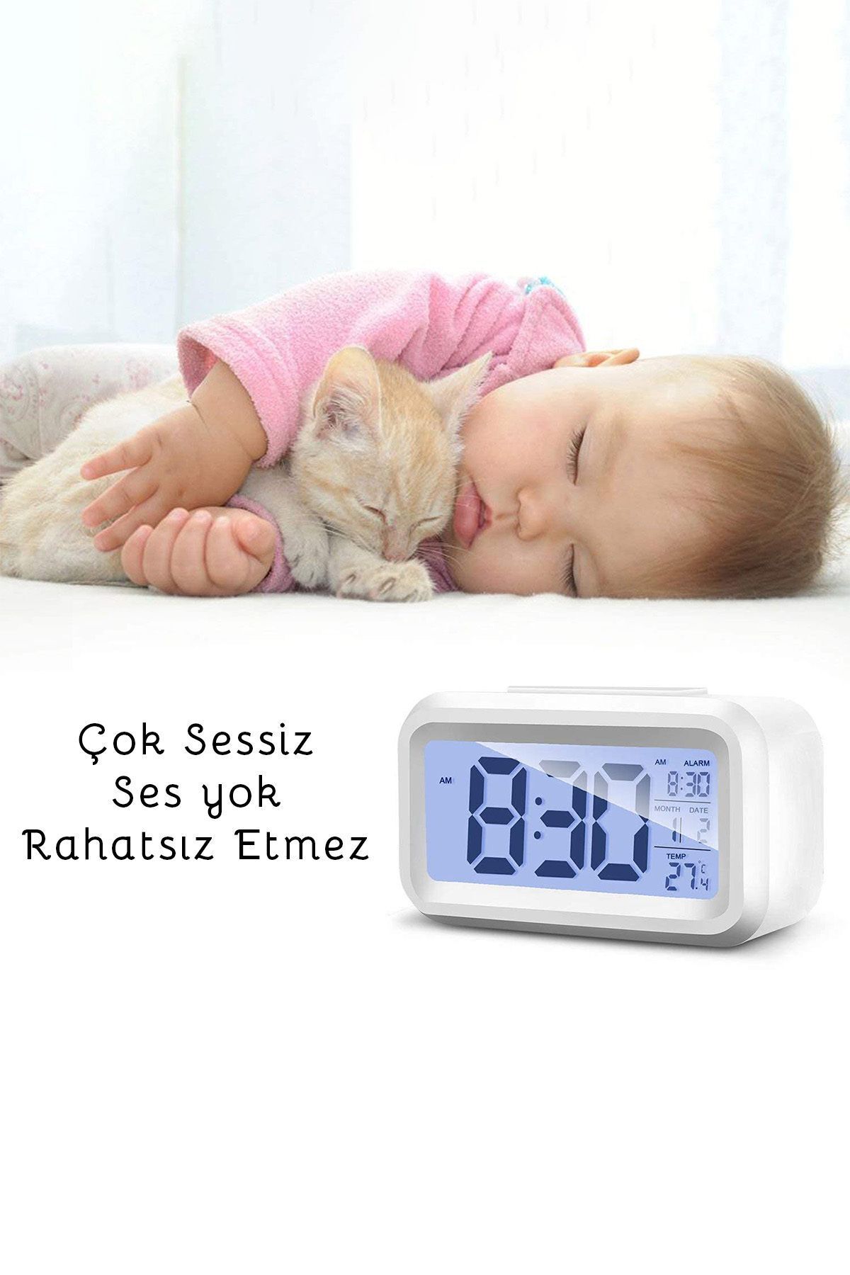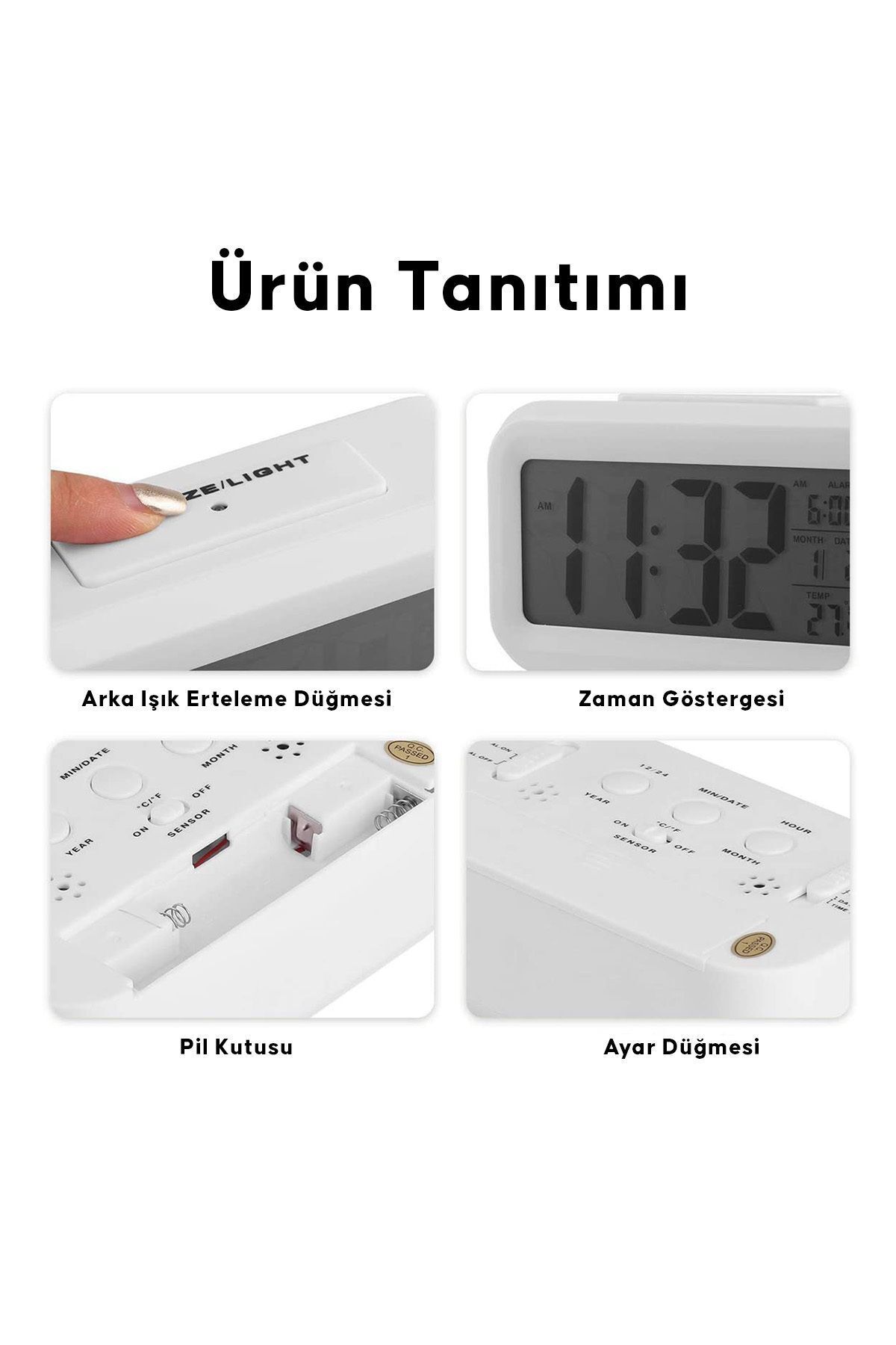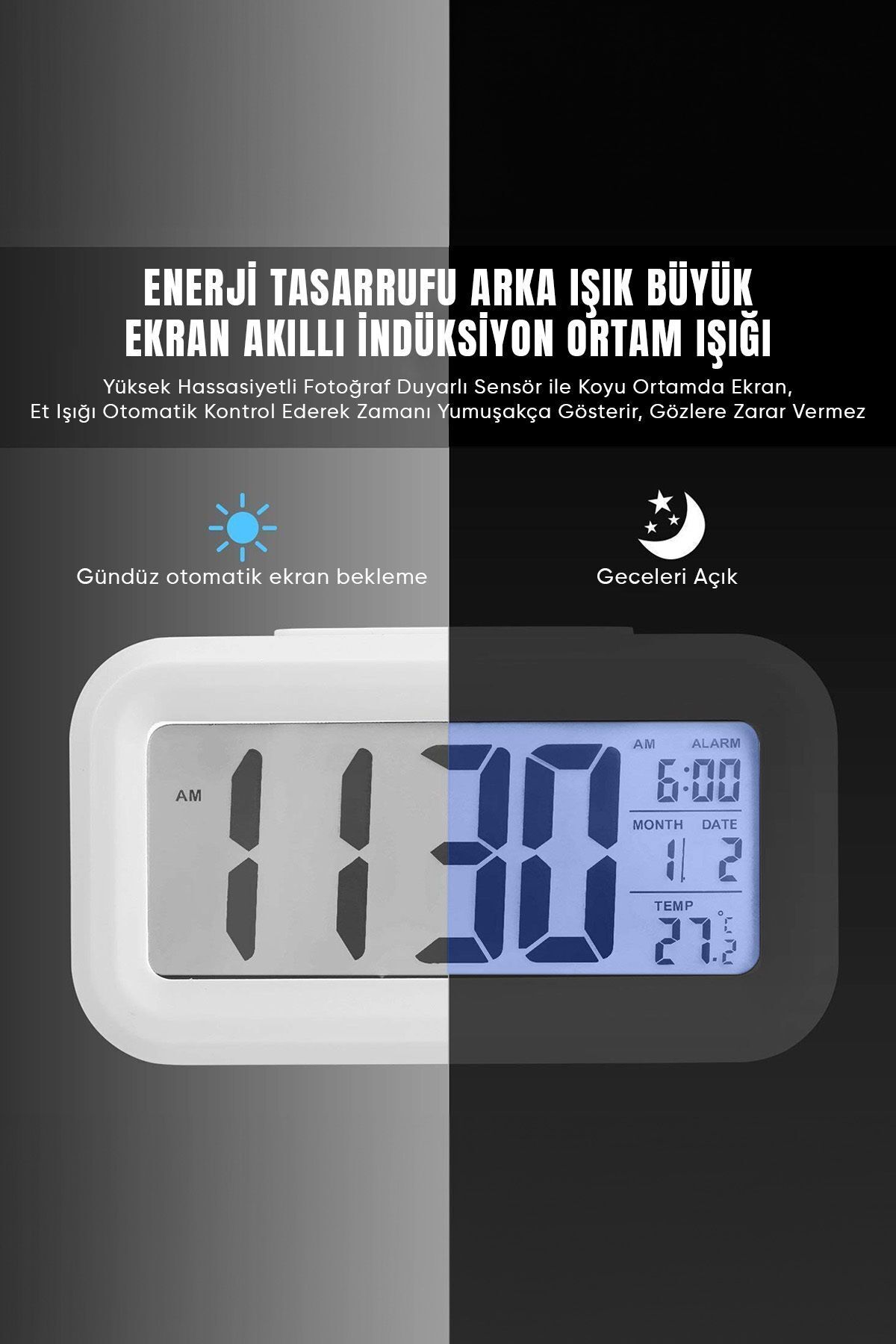• Sensörlü alarmlı masa saati Dijital saat büyük ekranıyla saati rahatlıkla görmenizi sağlamanın yanı sıra karanlık ortamlarda da rahatlıkla görülebilir yapıdadır.
