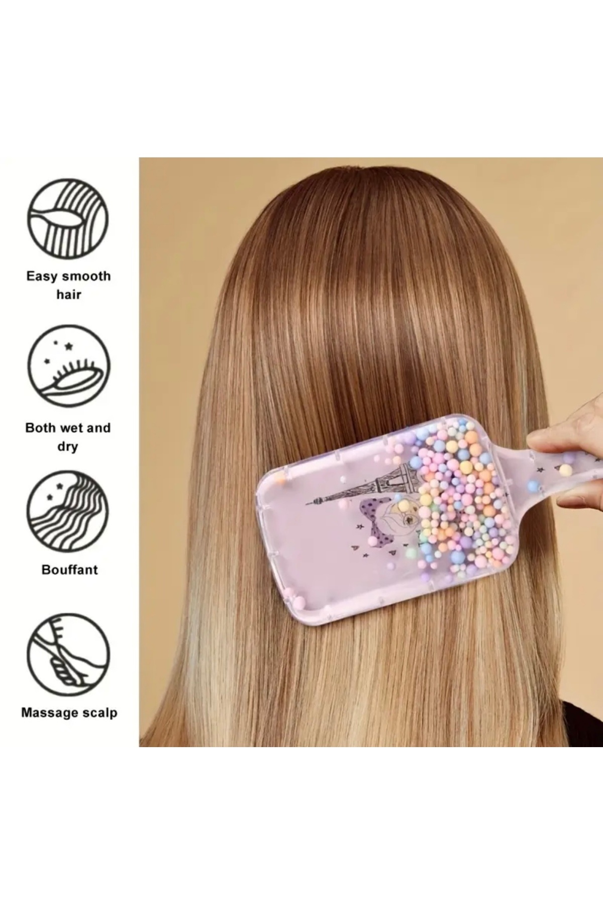 Kız çocuk ve bebekler için , köpük boncuklu, Unicorn desenli, mor lila renkli hafif saç tarağı ve saç fırçası
