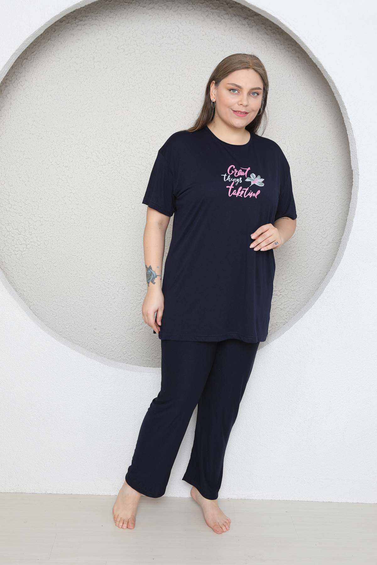 BÜYÜK BEDEN LİKRALI RİNG VİSKON KISA KOL YAZLIK PİJAMA TAKIM