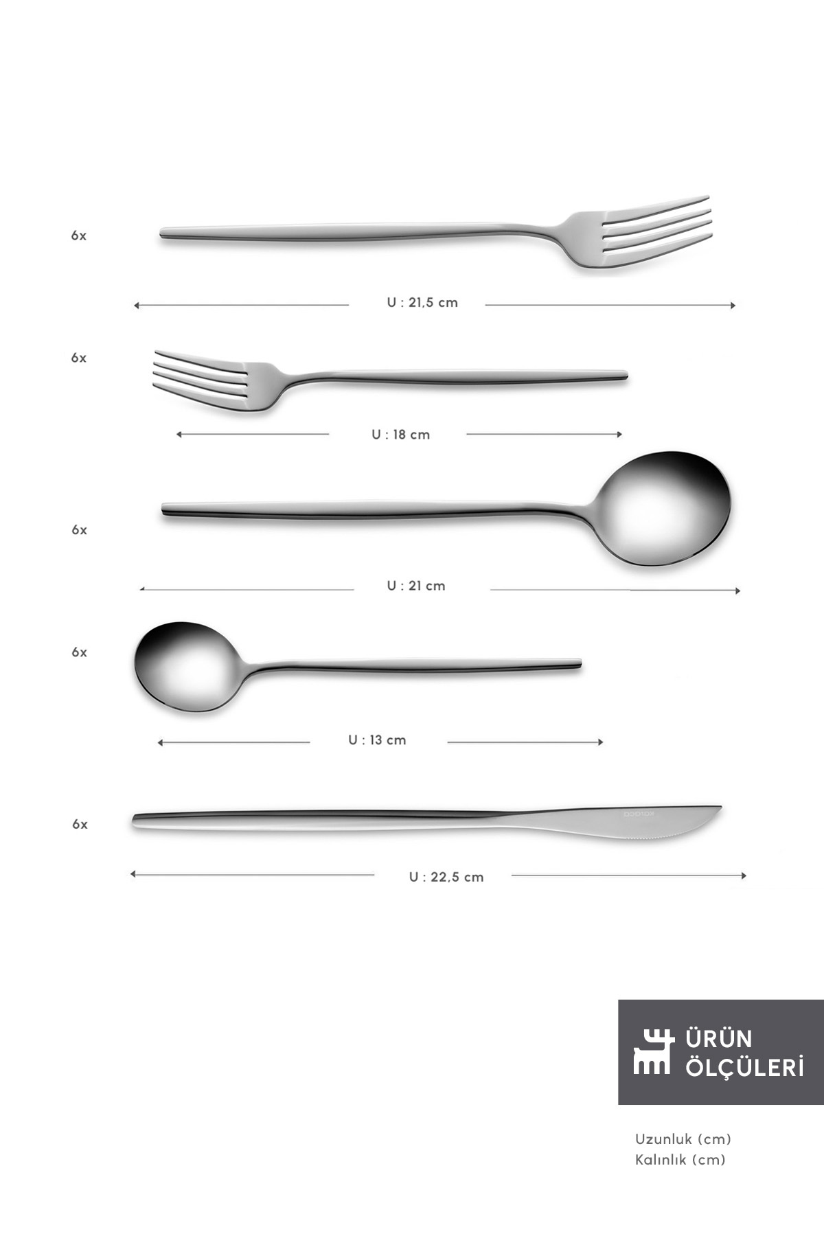 Orion Platin 6 Kişilik 30 Parça Çatal Kaşık Bıçak Takımı
