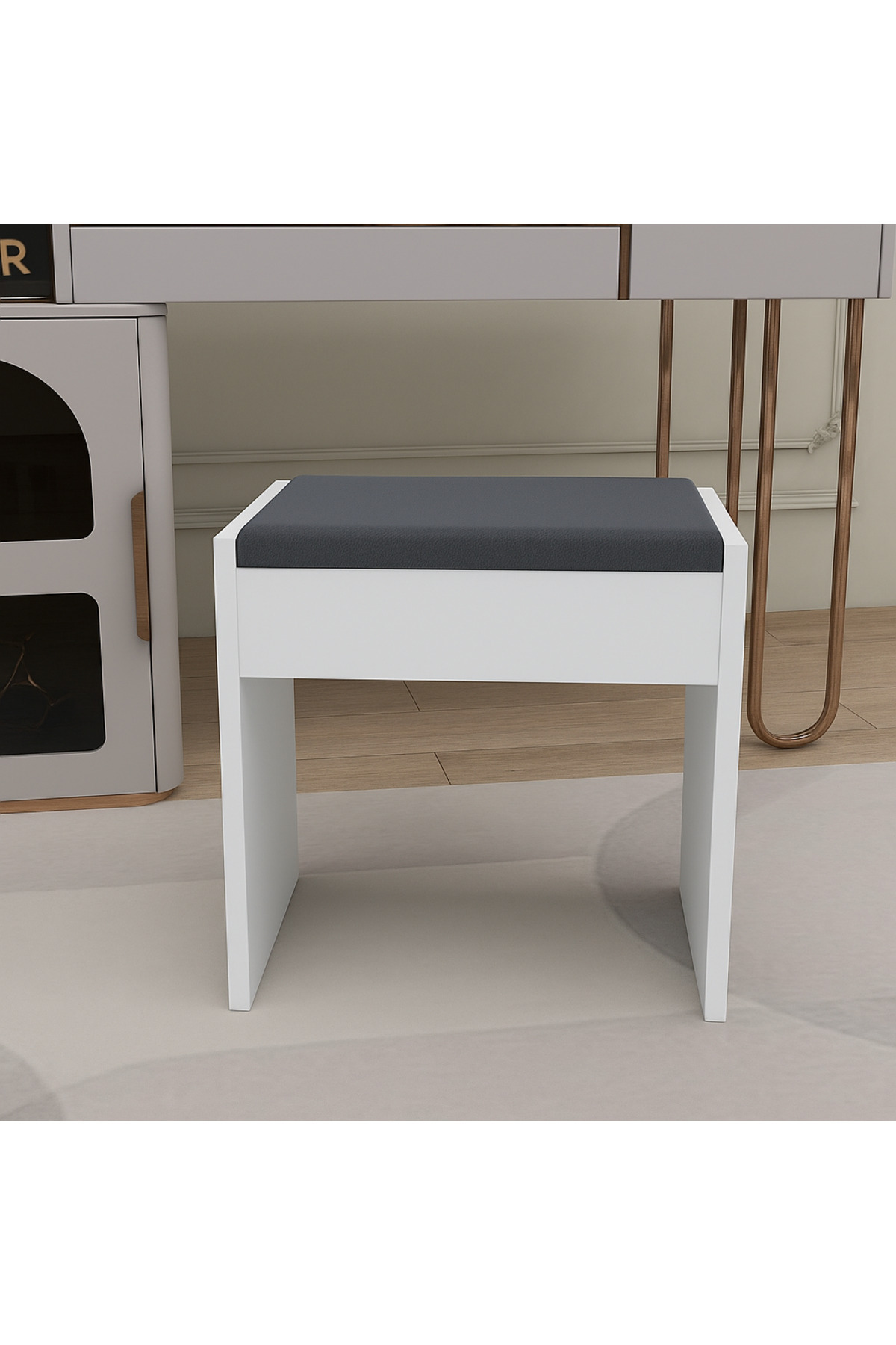 Minpuf Dekoratif Makyaj Masası Pufu Beyaz Antrasit - Minpuf