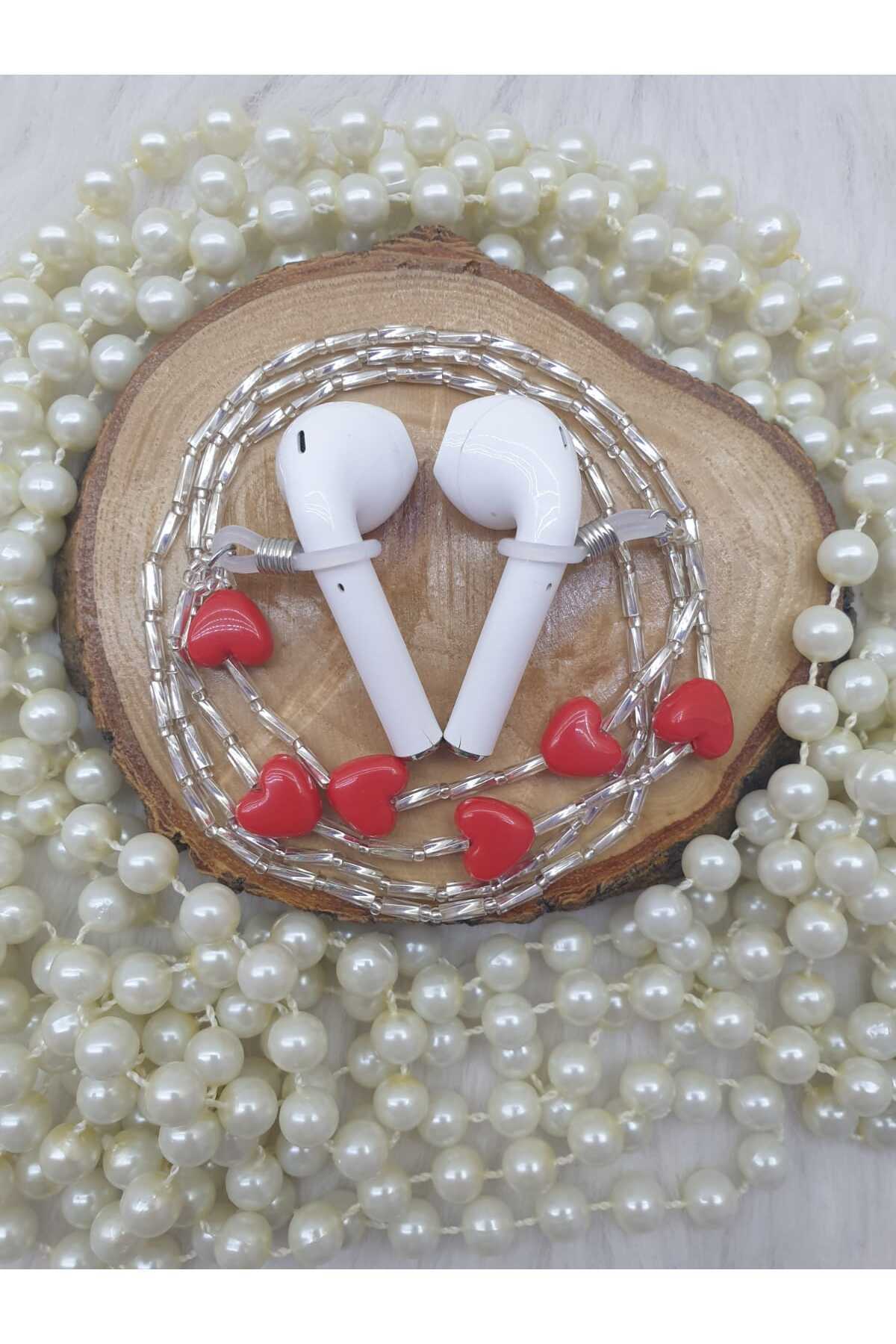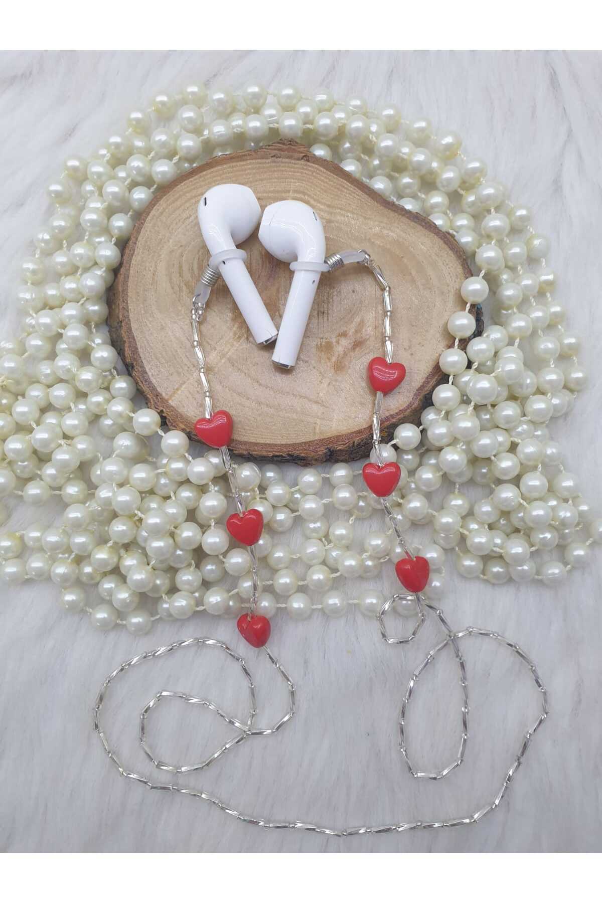 ZİNCİR-KIRMIZI KALP-AİRPODS ASKISI-YENİ NESİL KULAKLIK ZİNCİRİ-HEDİYELİK-KALPLER
