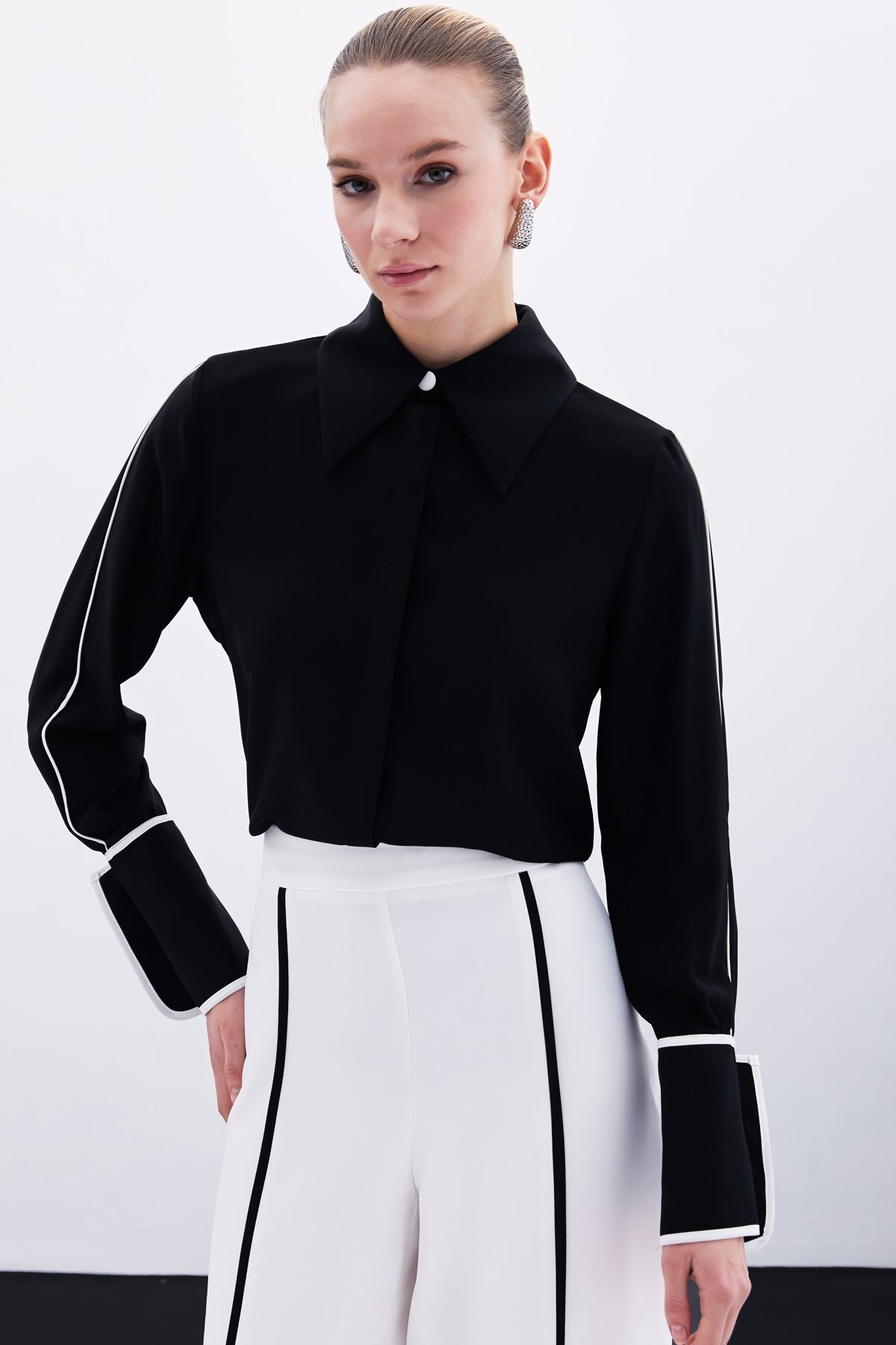 Klasik Manşetli Kontrast Gömlek - Ekru