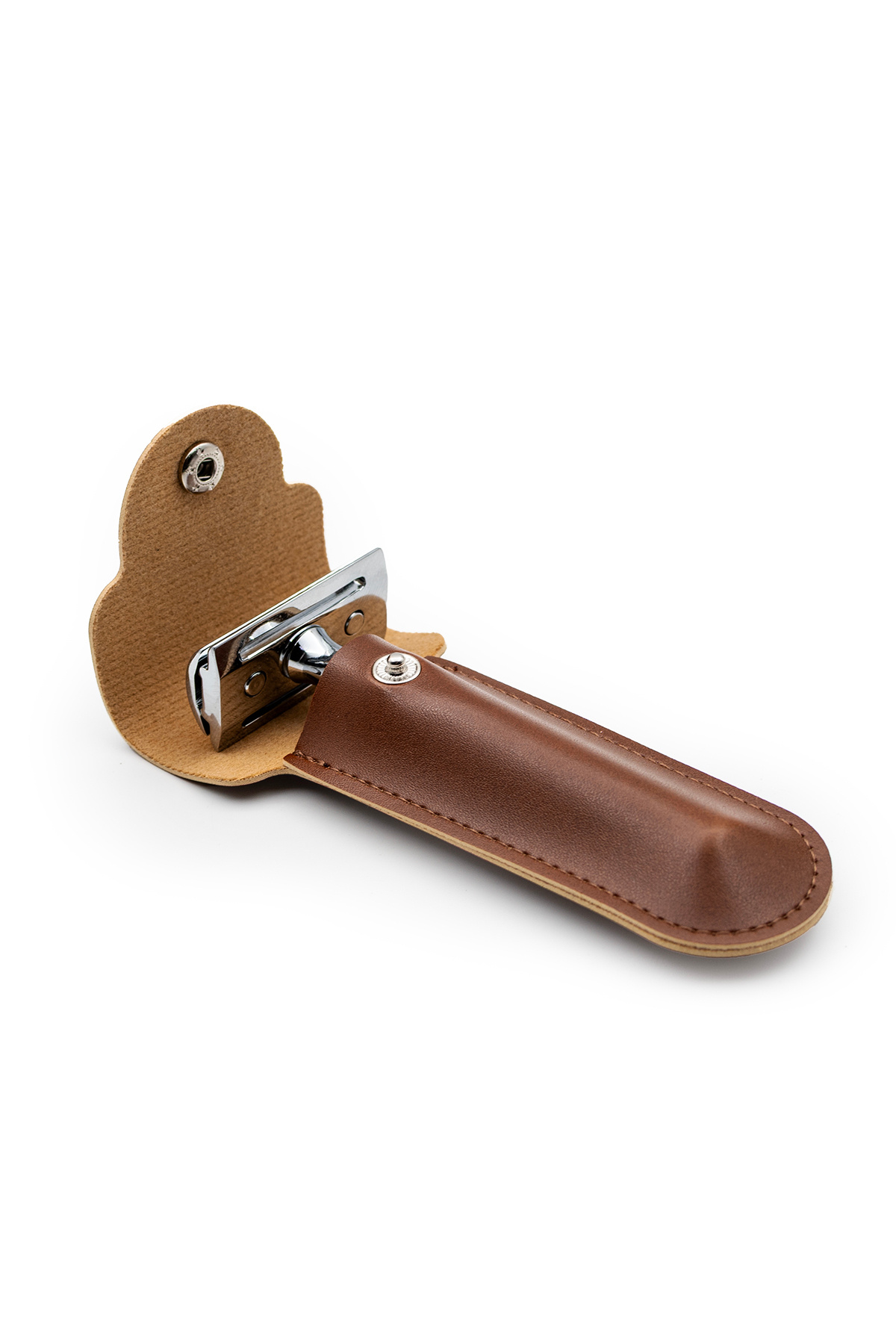Kahverengi Tıraş Bıçağı Seyahat Kılıfı, Çift Taraflı Suni Deri ve Çıtçıt Kapaklı Emniyetli Taşıma