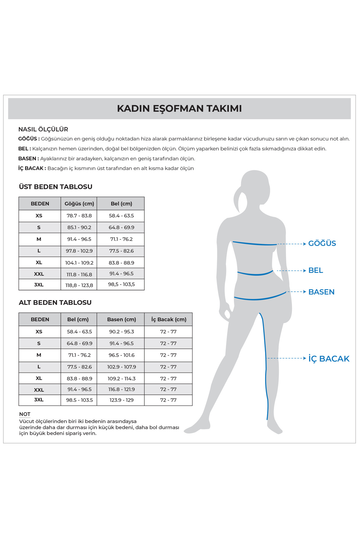 - Sweatshirt ve pantolon olmak üzere iki parçadan oluşan alt-üst takım, uyumlu bir görünüm yaratır.
