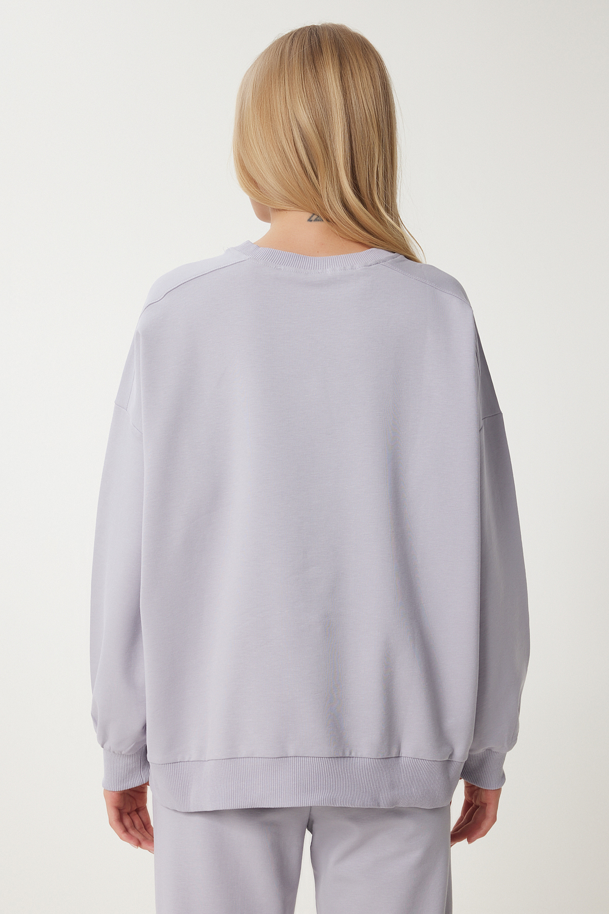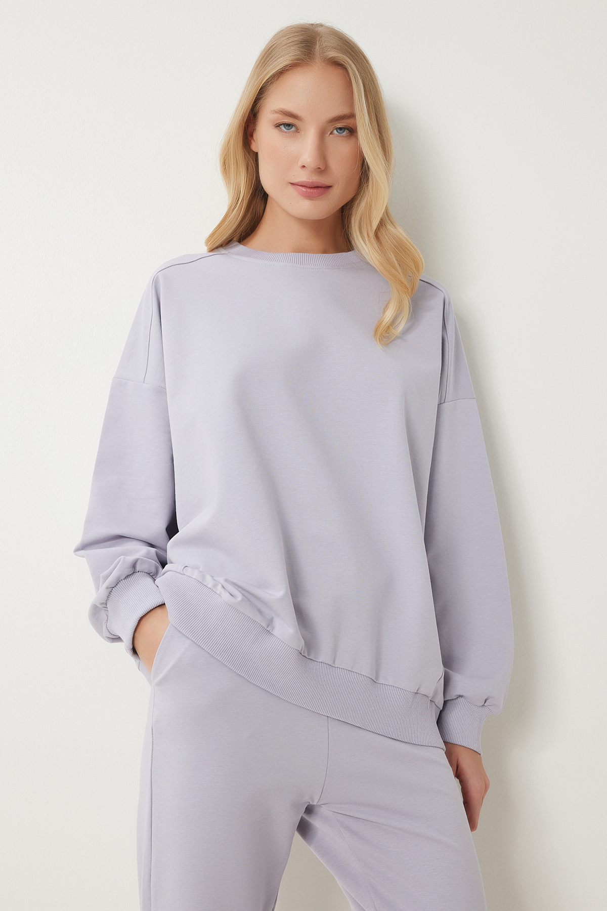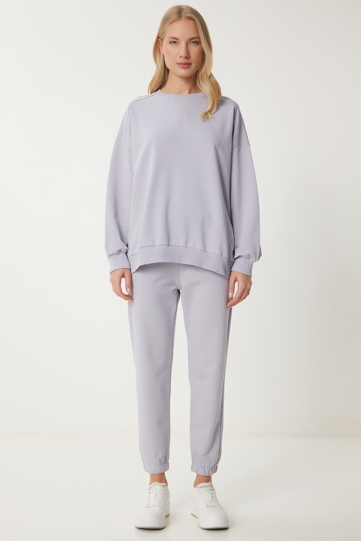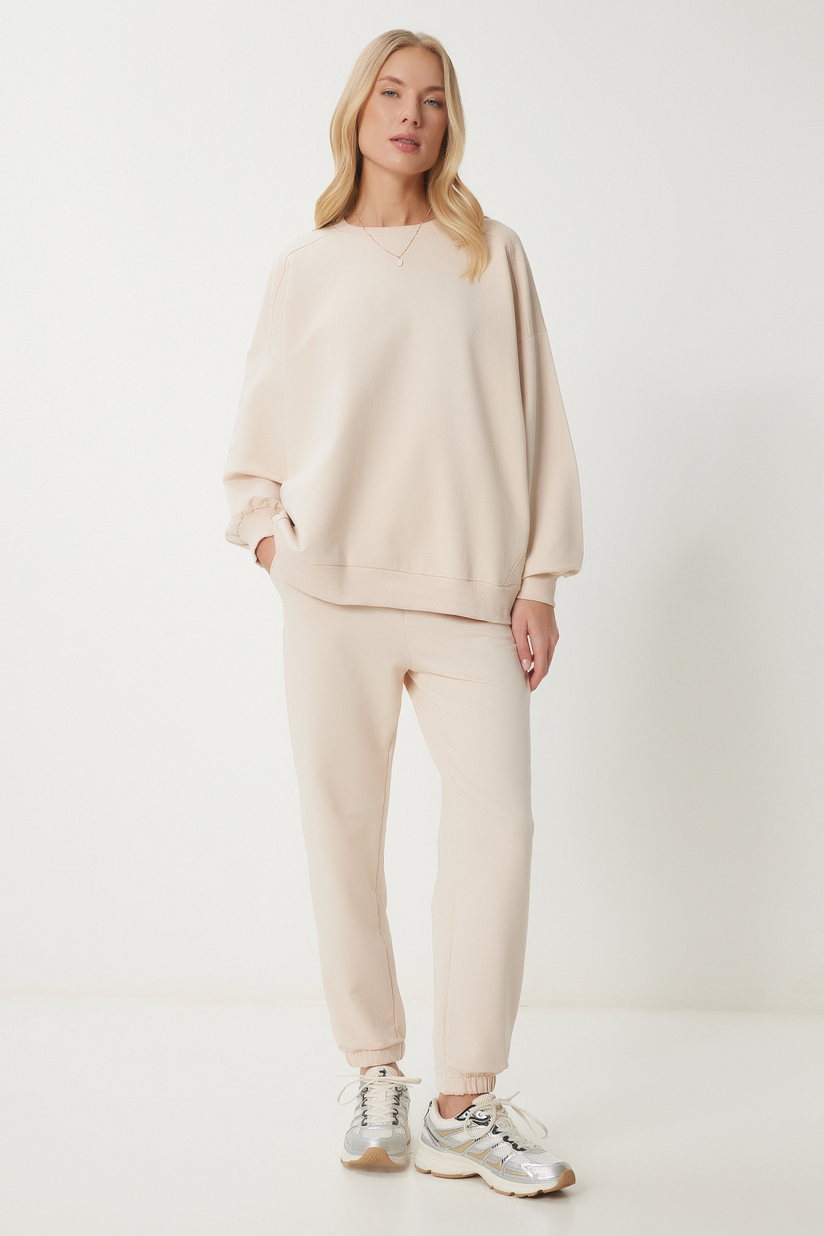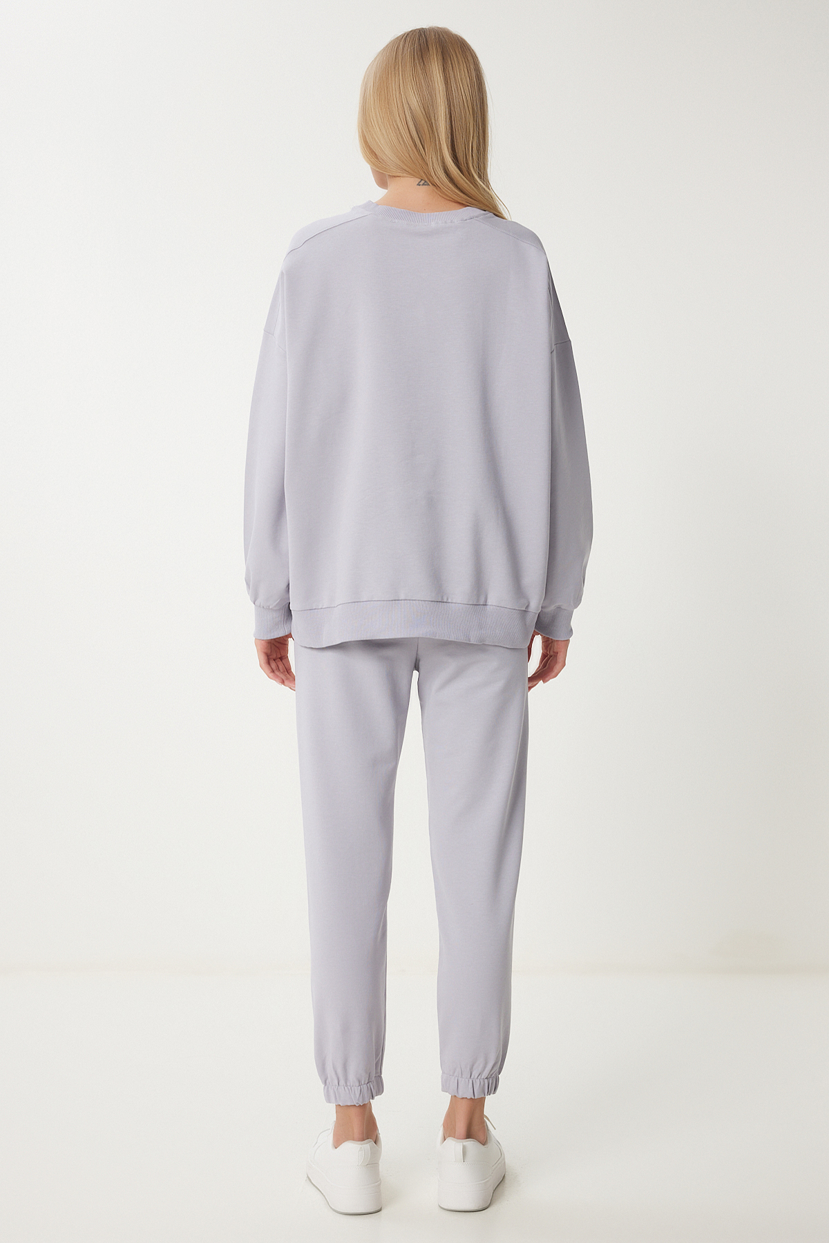 Bisiklet yaka, oversize sweatshirt ve yüksek, elastik bel, yan cepli jogger eşofman takımı
