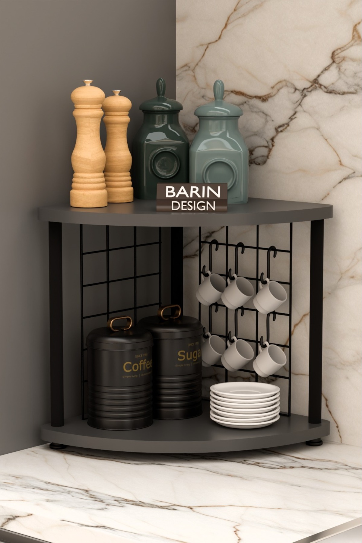 Metal Telli Kahve Köşesi Çevirtak Çok Amaçlı Mutfak Standı Tezgah Üstü Düzenleyici Çift Katlı Askılı