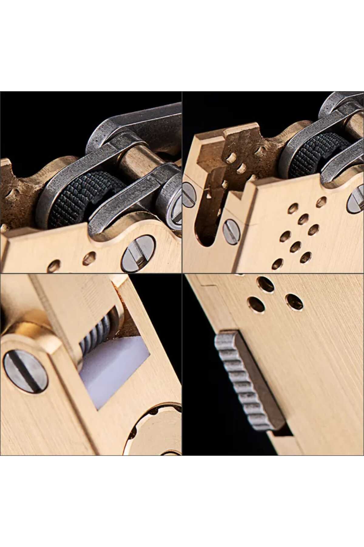 - El yapımı titanyum alaşımlı malzemeden üretilmiş, dayanıklılığı ve şık tasarımıyla dikkat çeken bir aksesuar.