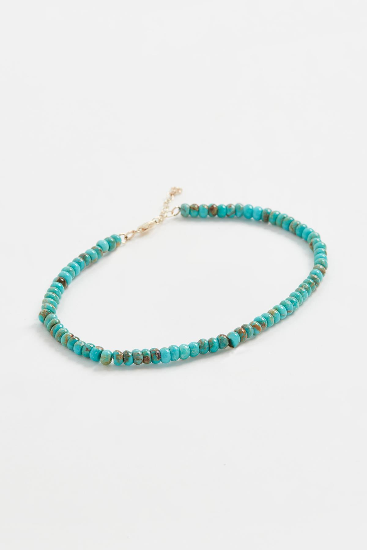 - Doğal taş kullanımı ile öne çıkan bu turkuaz boncuk halhal, şıklığınızı tamamlayacak zarif bir aksesuardır