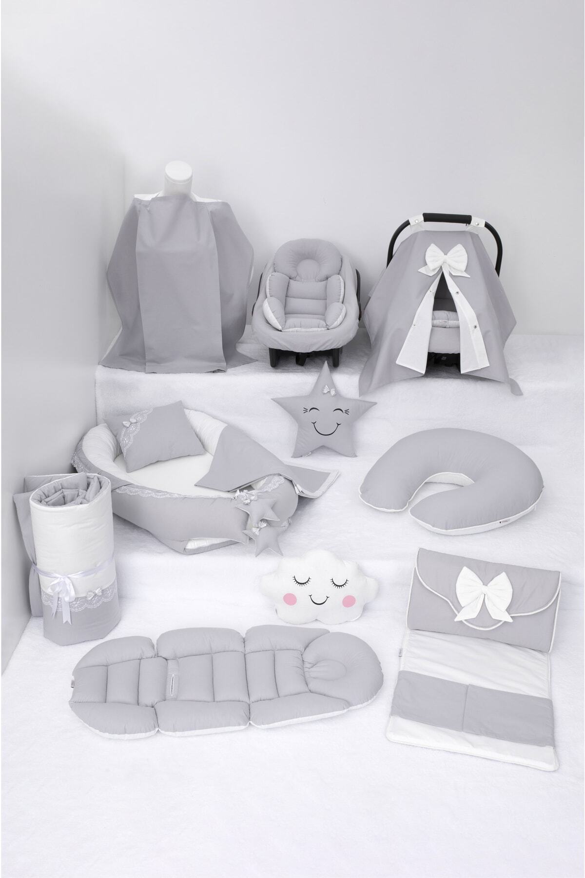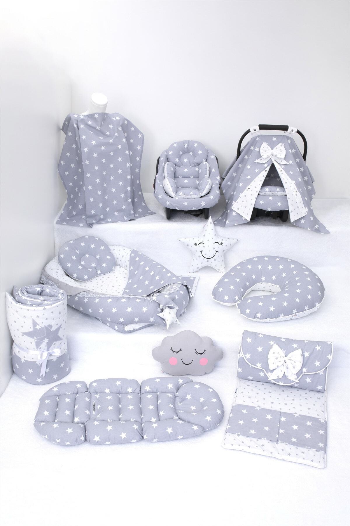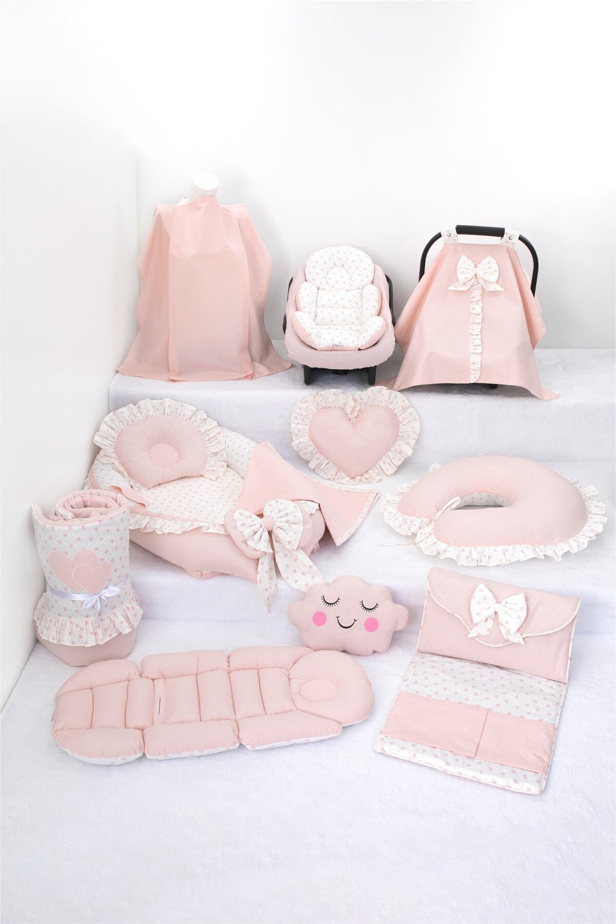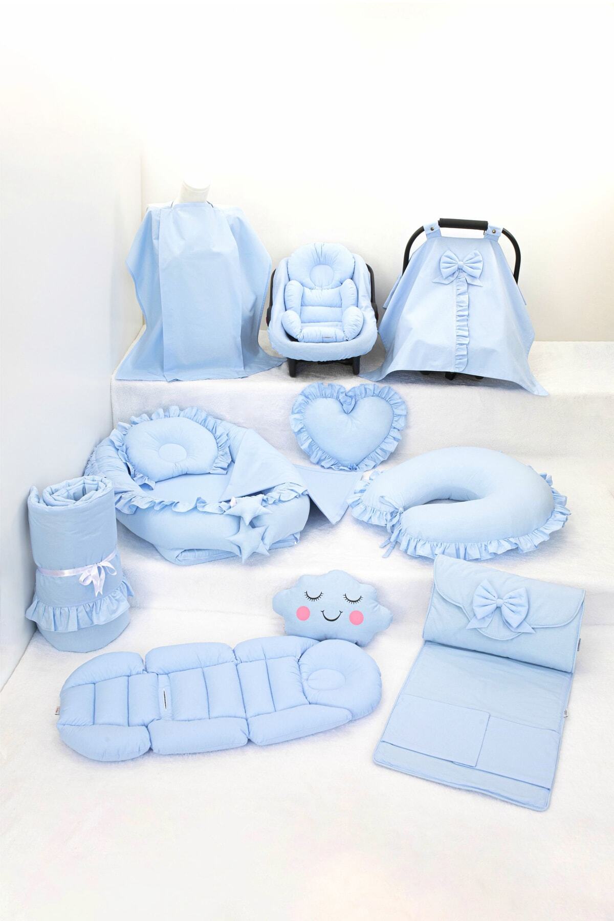 KOMPLE SET ÜRÜN İÇERİK BİLGİLERİ * Babynest Dış ölçü (En: 60 cm, Boy: 95 cm) (bağlama sıklığına göre değişiklik gösterebilir) Babynest İç ölçü (En: 45 cm, Boy: 75 cm) * Baş yastık (En: 27cm, Boy: 32cm ) * Pike (En: 90cm, Boy: 90cm) * Elyaf yorgan (En: 80cm, Boy: 90cm) * Yıldız yastık (En: 37cm, Boy: 37cm) * Bulut yastık (En: 38cm, Boy: 22cm) * Tutmalı Puset örtüsü (En: 85cm, Boy: 113cm) * Puset minderi (En: 39cm, Boy: 65cm) * Araba yatağı (En: 38cm, Boy: 80cm) * Puset çarşafı (standart) * Emzirme yastığı (En: 65cm, Boy: 65cm) * Emzirme önlüğü (En: 85cm, Boy: 70cm) * Çantalı alt açma (En: 40cm, Boy: 72cm) * Alt açma yastığı (En: 20cm, Boy: 33cm) YIKAMA TALİMATI - Ürünlerimiz %100 pamuk kumaştır.