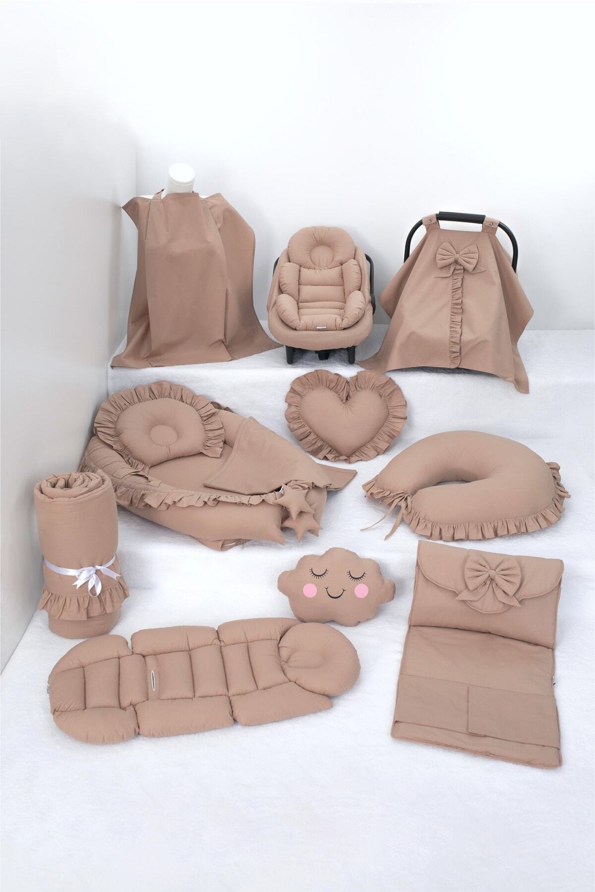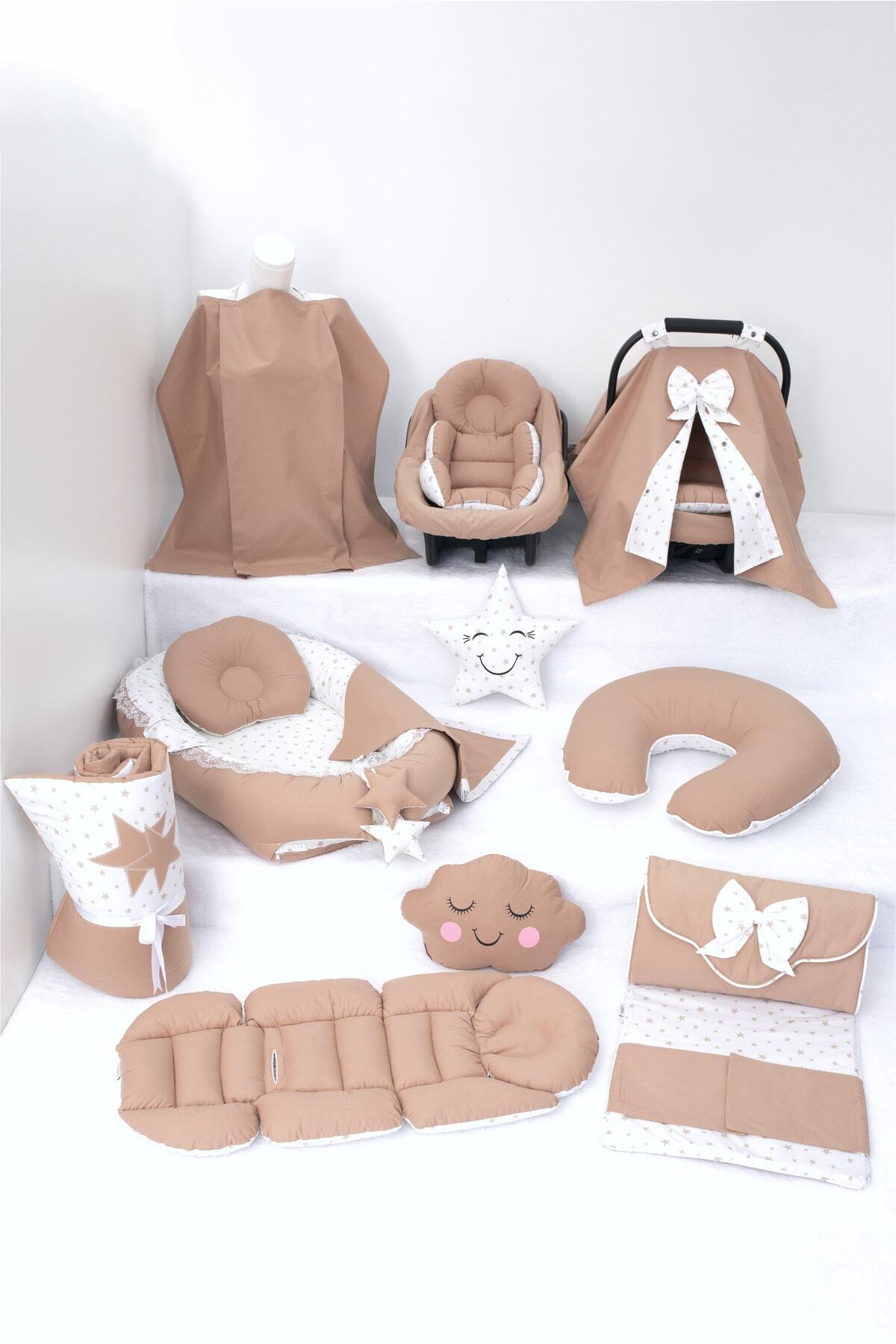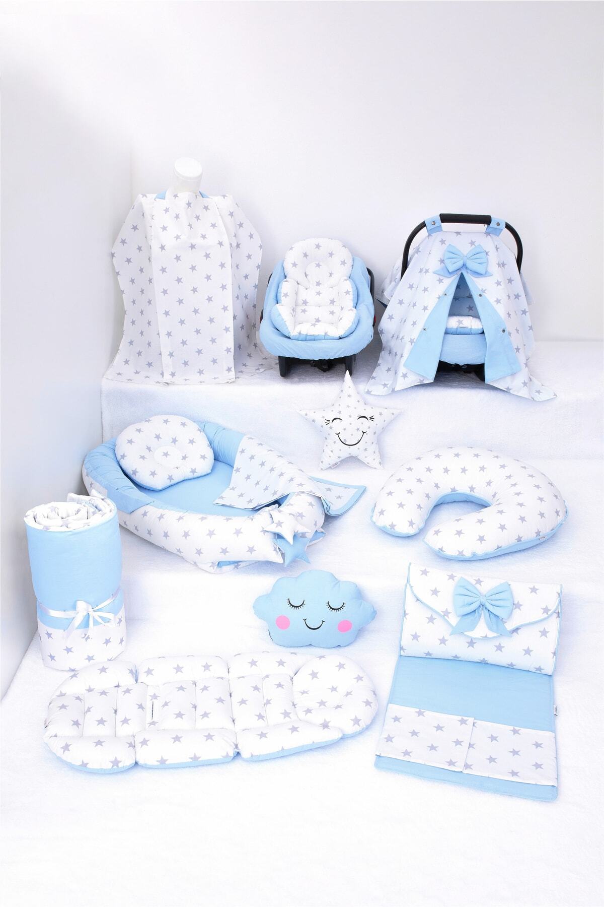 KOMPLE SET ÜRÜN İÇERİK BİLGİLERİ * Babynest Dış ölçü (En: 60 cm, Boy: 95 cm) (bağlama sıklığına göre değişiklik gösterebilir) Babynest İç ölçü (En: 45 cm, Boy: 75 cm) * Baş yastık (En: 27cm, Boy: 32cm ) * Pike (En: 90cm, Boy: 90cm) * Elyaf yorgan (En: 80cm, Boy: 90cm) * Yıldız yastık (En: 37cm, Boy: 37cm) * Bulut yastık (En: 38cm, Boy: 22cm) * Tutmalı Puset örtüsü (En: 85cm, Boy: 113cm) * Puset minderi (En: 39cm, Boy: 65cm) * Araba yatağı (En: 38cm, Boy: 80cm) * Puset çarşafı (standart) * Emzirme yastığı (En: 65cm, Boy: 65cm) * Emzirme önlüğü (En: 85cm, Boy: 70cm) * Çantalı alt açma (En: 40cm, Boy: 72cm) * Alt açma yastığı (En: 20cm, Boy: 33cm) YIKAMA TALİMATI - Ürünlerimiz %100 pamuk kumaştır.