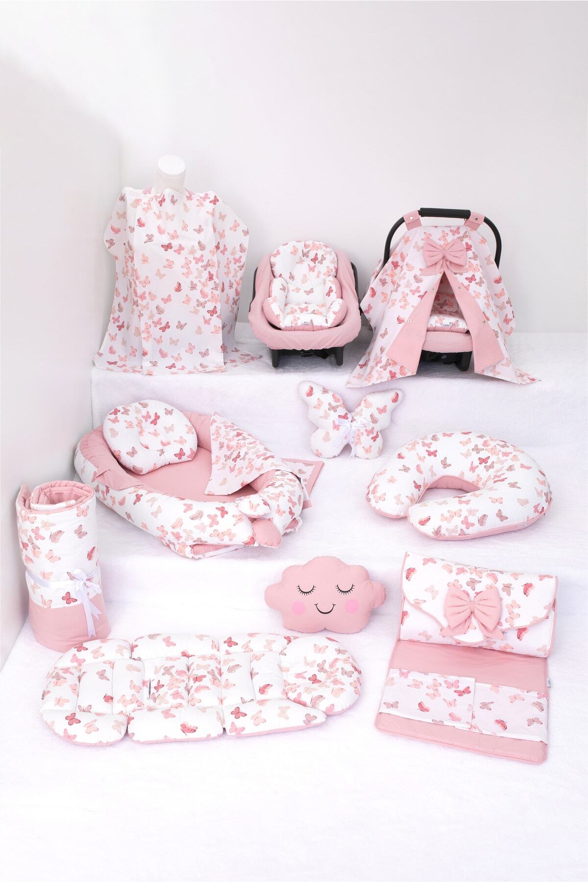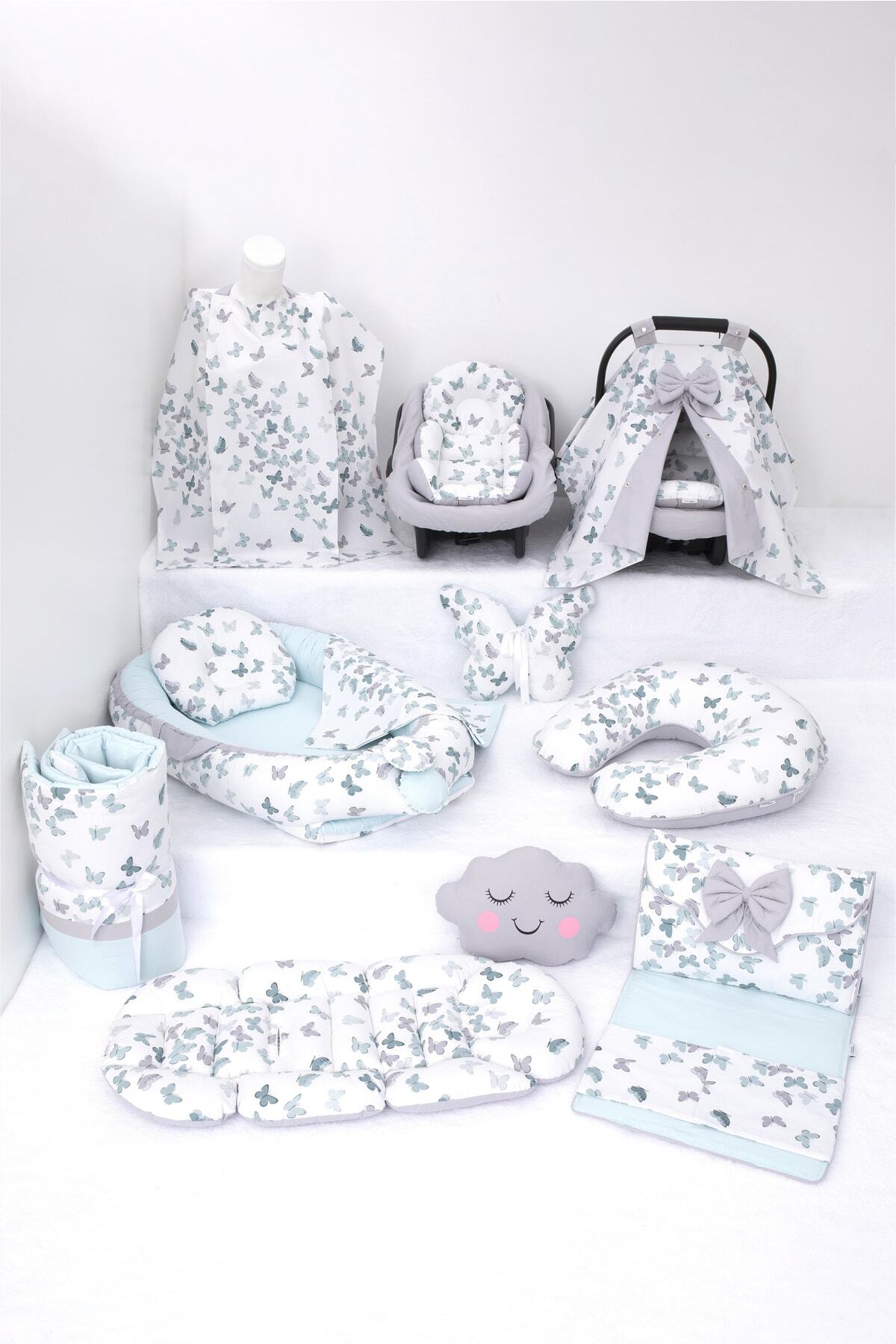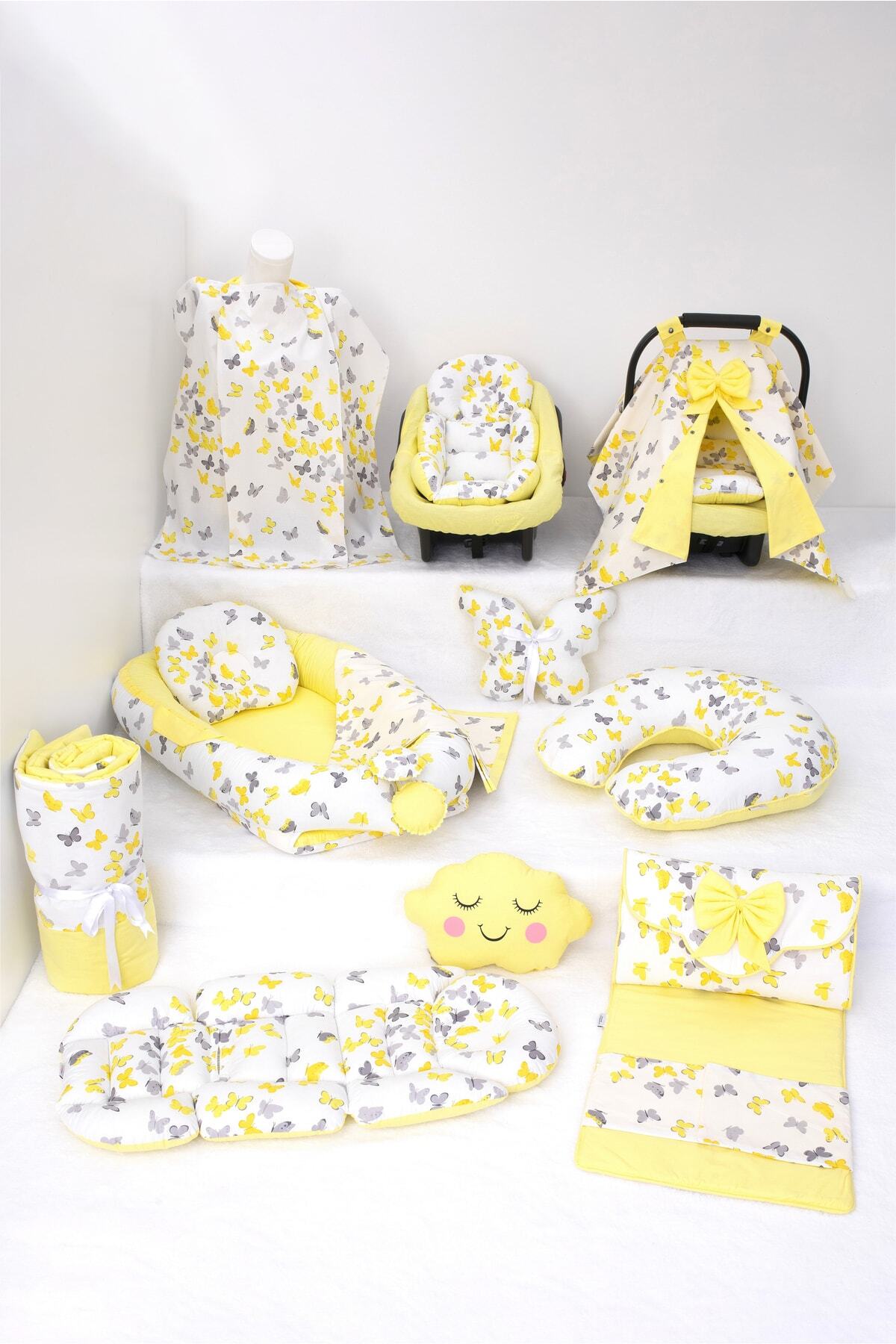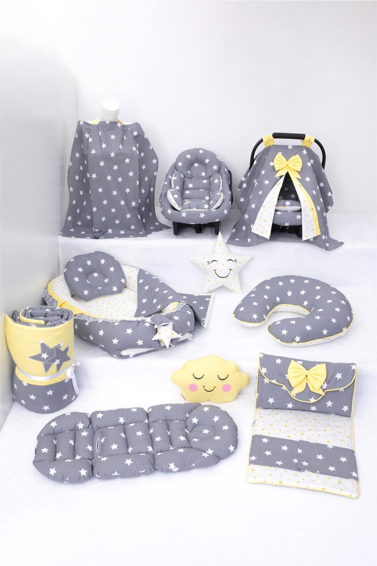 KOMPLE SET ÜRÜN İÇERİK BİLGİLERİ * Babynest Dış ölçü (En: 60 cm, Boy: 95 cm) (bağlama sıklığına göre değişiklik gösterebilir) Babynest İç ölçü (En: 45 cm, Boy: 75 cm) * Baş yastık (En: 27cm, Boy: 32cm ) * Pike (En: 90cm, Boy: 90cm) * Elyaf yorgan (En: 80cm, Boy: 90cm) * Yıldız yastık (En: 37cm, Boy: 37cm) * Bulut yastık (En: 38cm, Boy: 22cm) * Tutmalı Puset örtüsü (En: 85cm, Boy: 113cm) * Puset minderi (En: 39cm, Boy: 65cm) * Araba yatağı (En: 38cm, Boy: 80cm) * Puset çarşafı (standart) * Emzirme yastığı (En: 65cm, Boy: 65cm) * Emzirme önlüğü (En: 85cm, Boy: 70cm) * Çantalı alt açma (En: 40cm, Boy: 72cm) * Alt açma yastığı (En: 20cm, Boy: 33cm) YIKAMA TALİMATI - Ürünlerimiz %100 pamuk kumaştır.