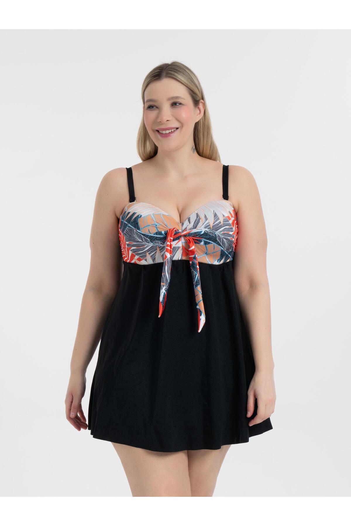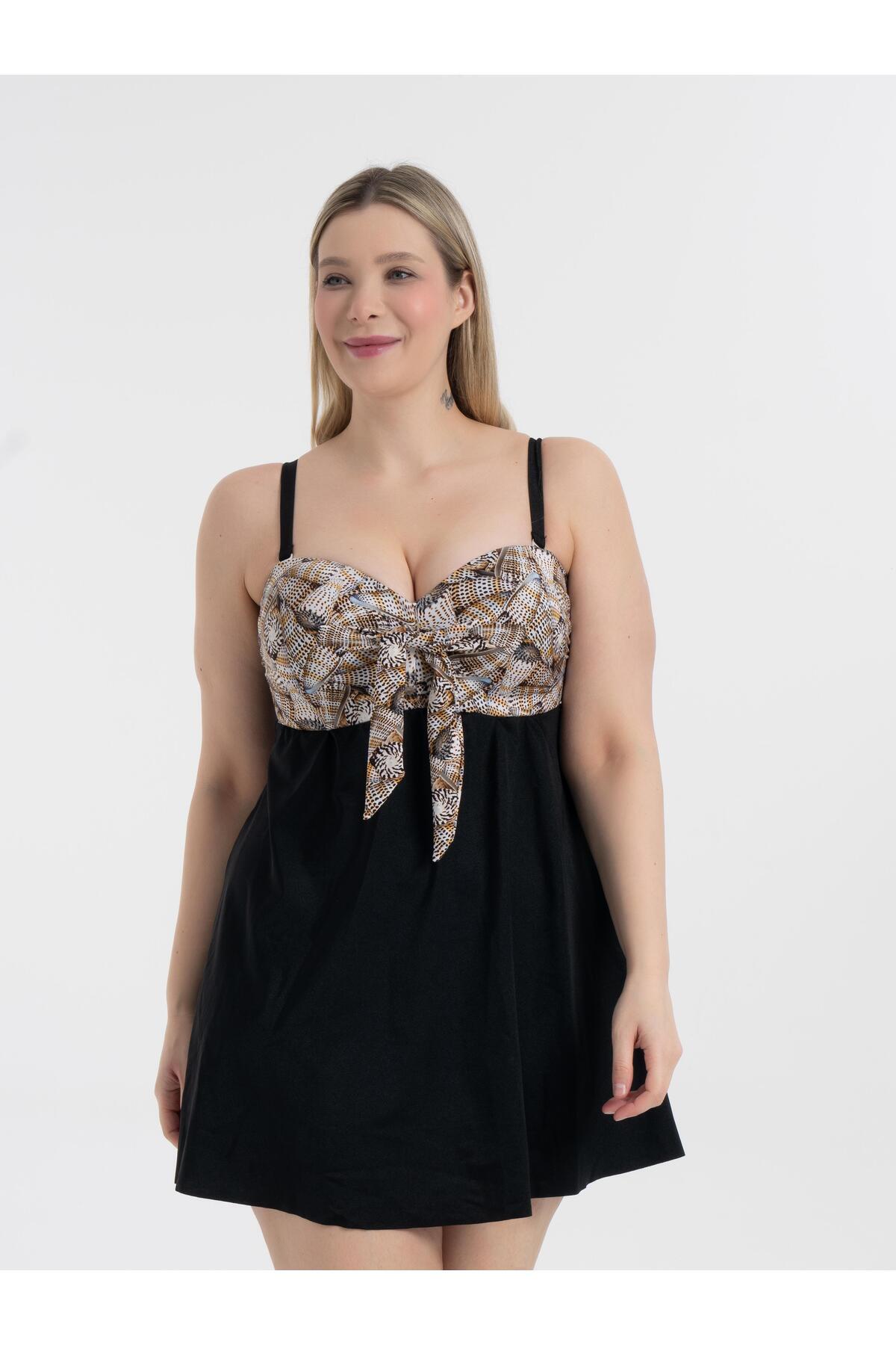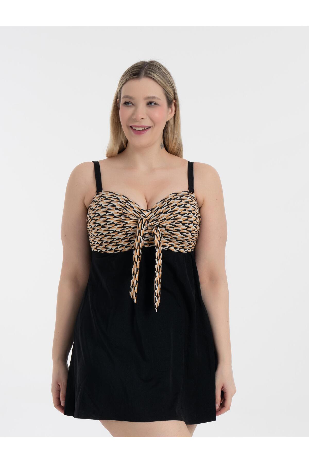 Aquaviva Kadın Büyük Beden Siyah Beyaz Ince Çizgili Gloria Toparlayıcı Fiyonklu Elbise Mayo