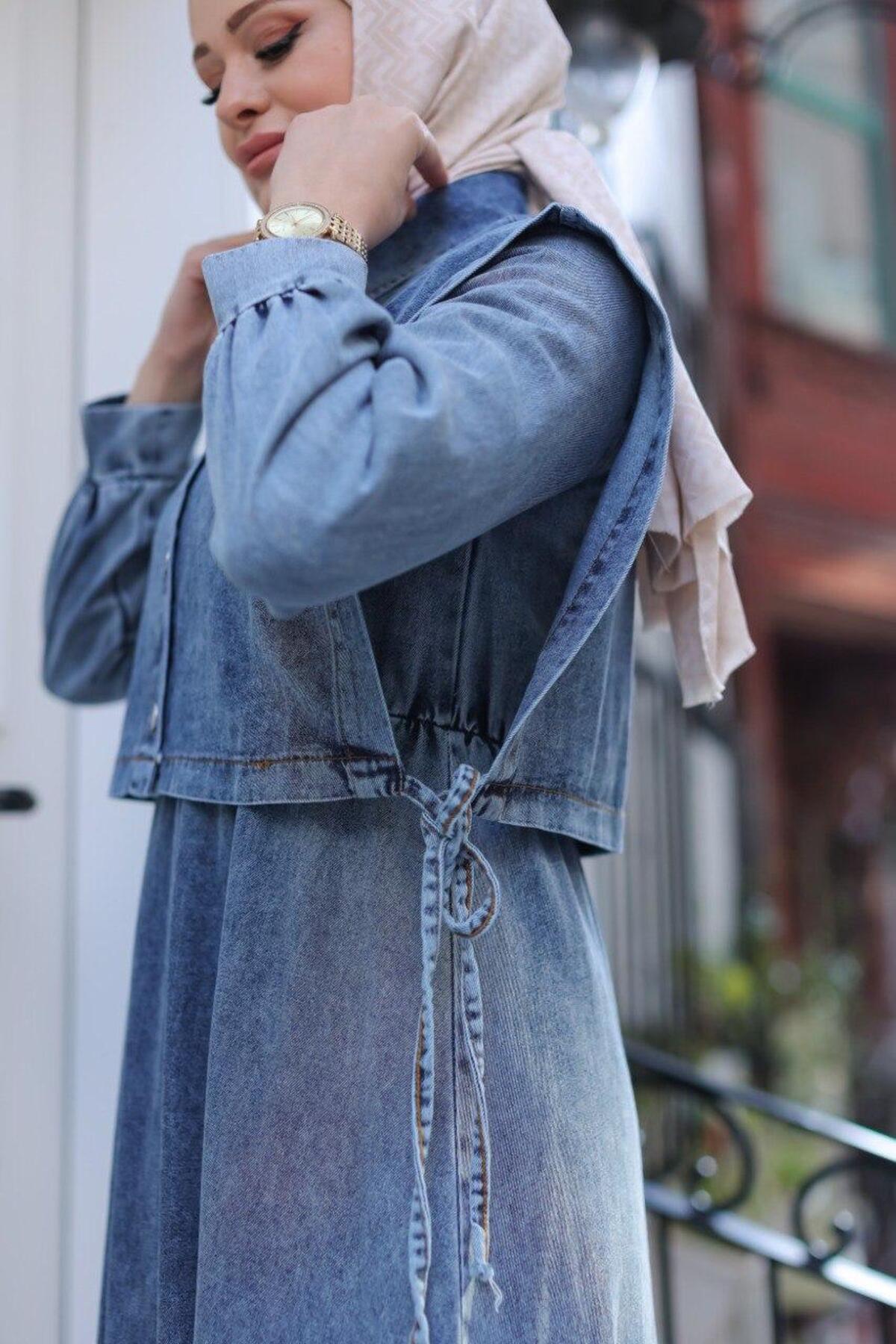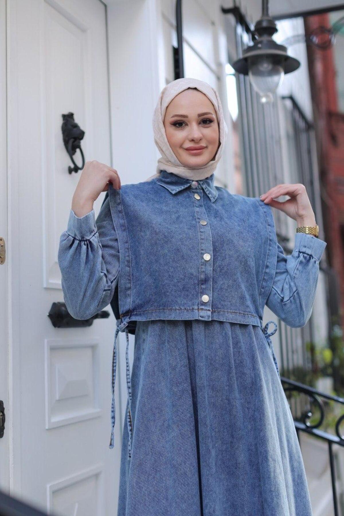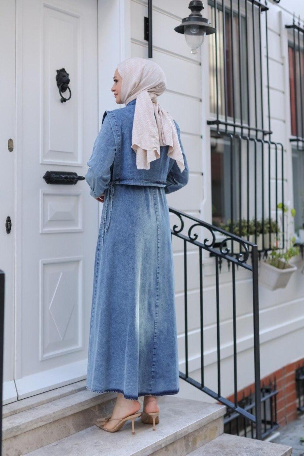 - Denim kumaşın doğal dokusuyla kaliteyi hissettiren bu elbise, her gardrobun vazgeçilmezi haline gelir.