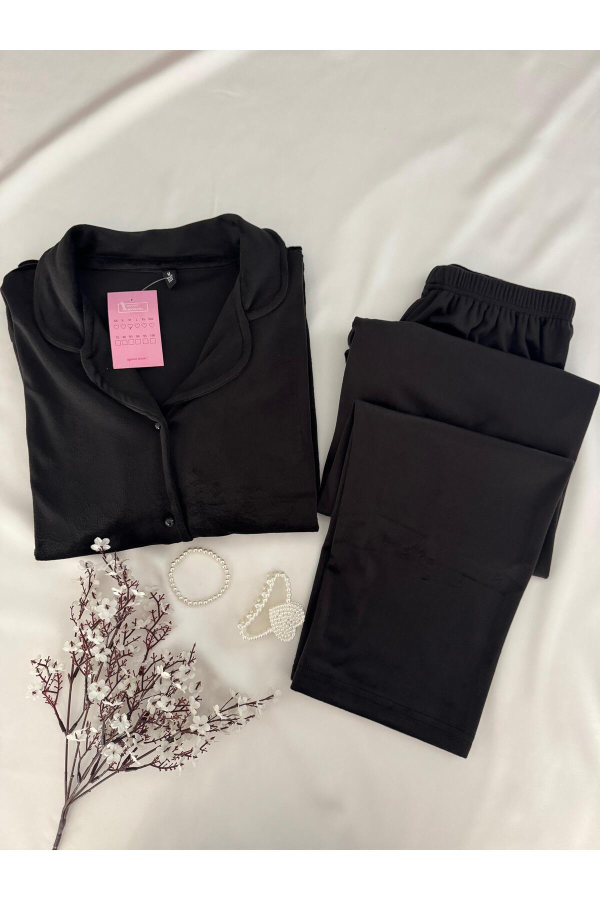 - Kadife materyali sayesinde pürüzsüz bir dokunuşa sahip olan bu pijama takımı, cildinizle dosttur ve nazikçe yatıştırıcı etki gösterir.