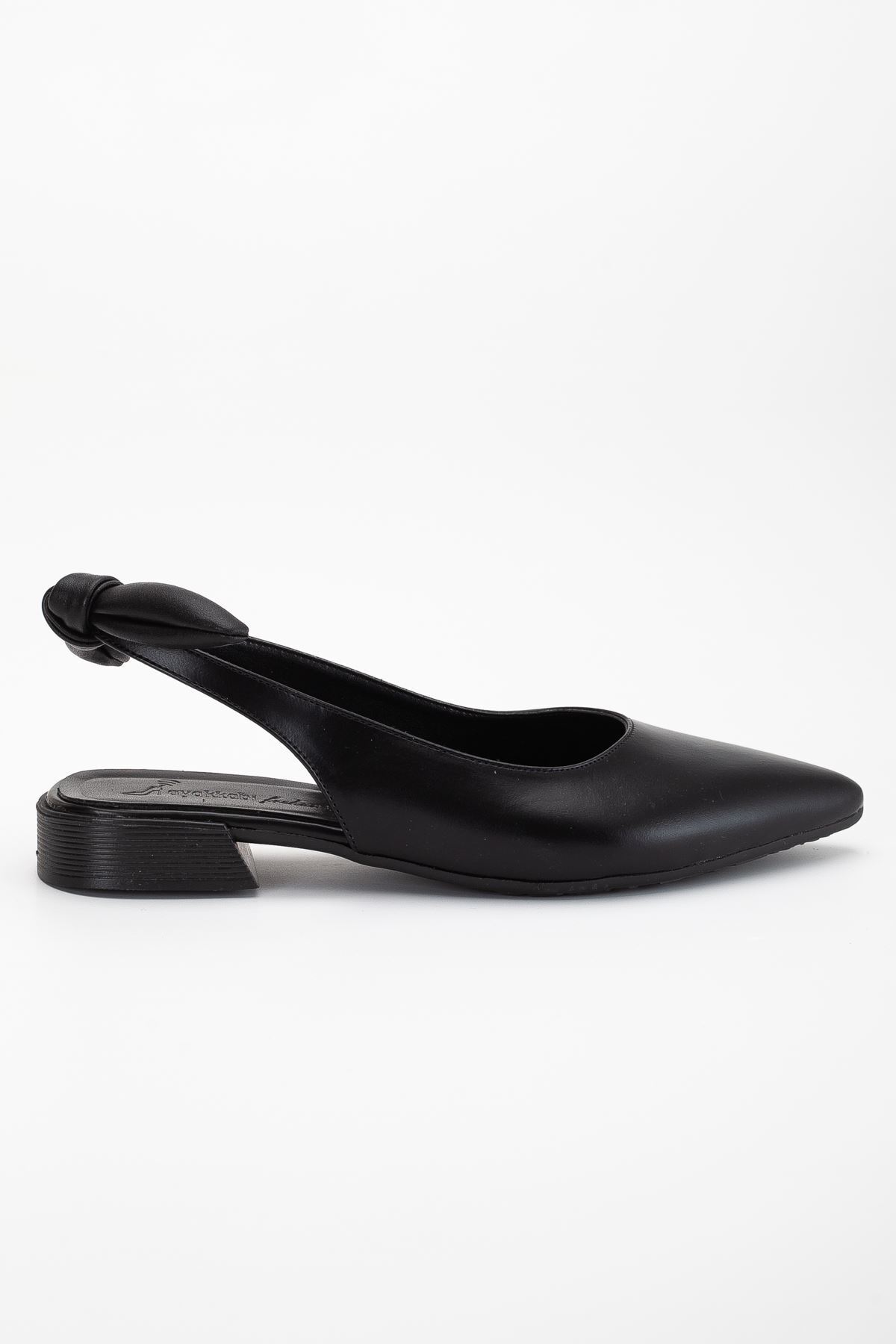 Melid Kadın Arkası Açık Fiyonklu Sivri Babet Siyah Cilt