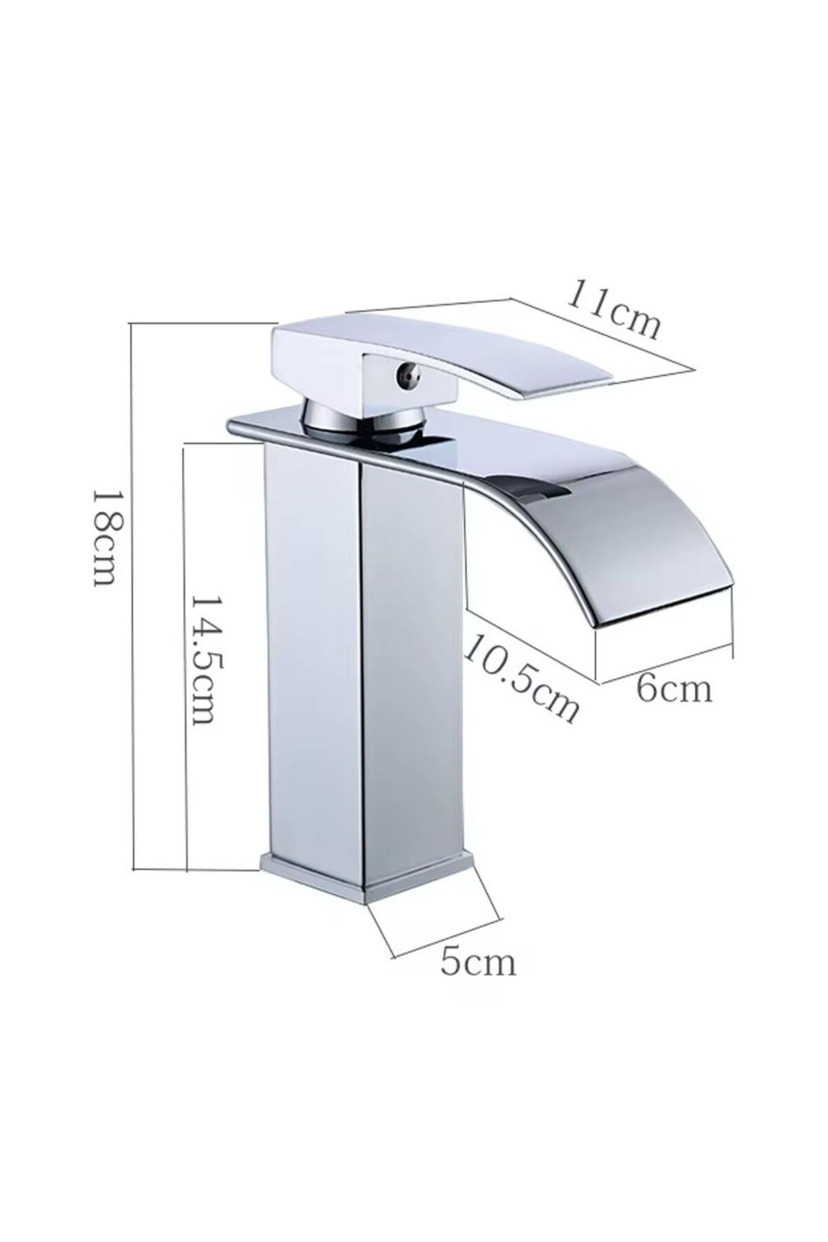 LAVABO BATARYASI KROM ŞELALE KARE GÖVDE EĞİMLİ HAVZA BANYO ARMATÜR ÇİFT GİRİŞ MUSLUK LÜKS ERGONAMİK