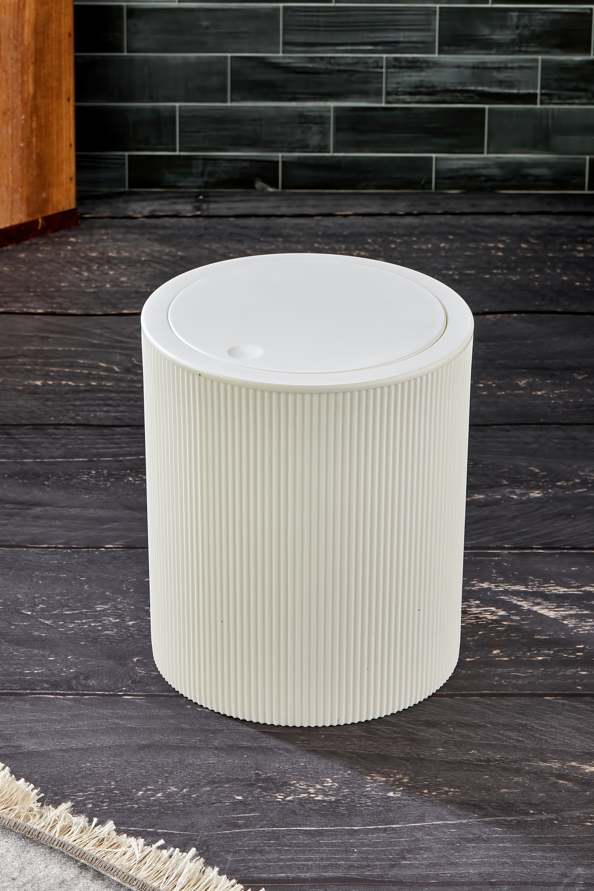 Line Çizgili Yuvarlak Kapaklı Klik Çöp Kovası Banyo Mutfak