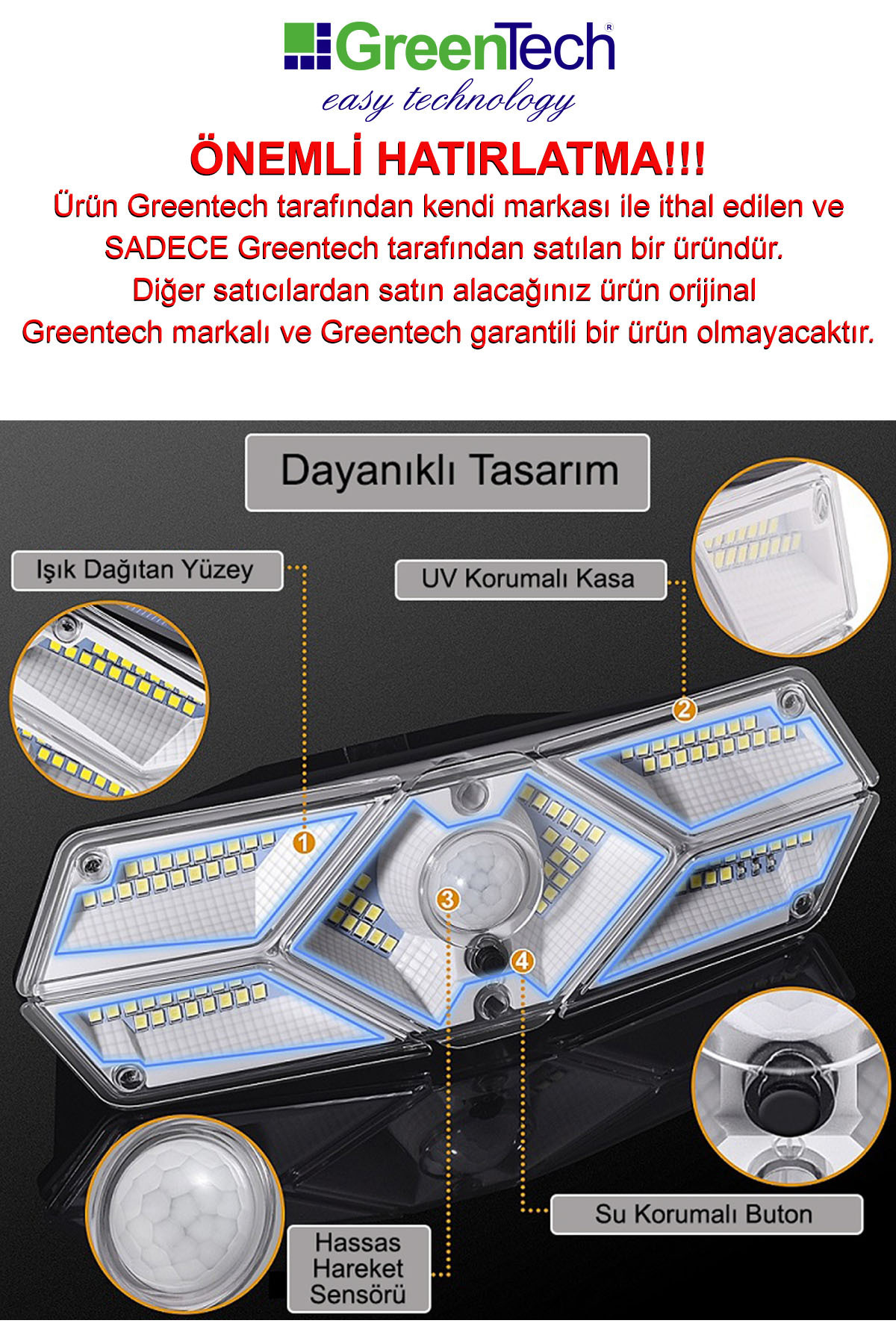 Güneş Enerjili Hareket Sensörlü, 6 Taraflı 104 Led Aydınlatma / GT-SL13/S