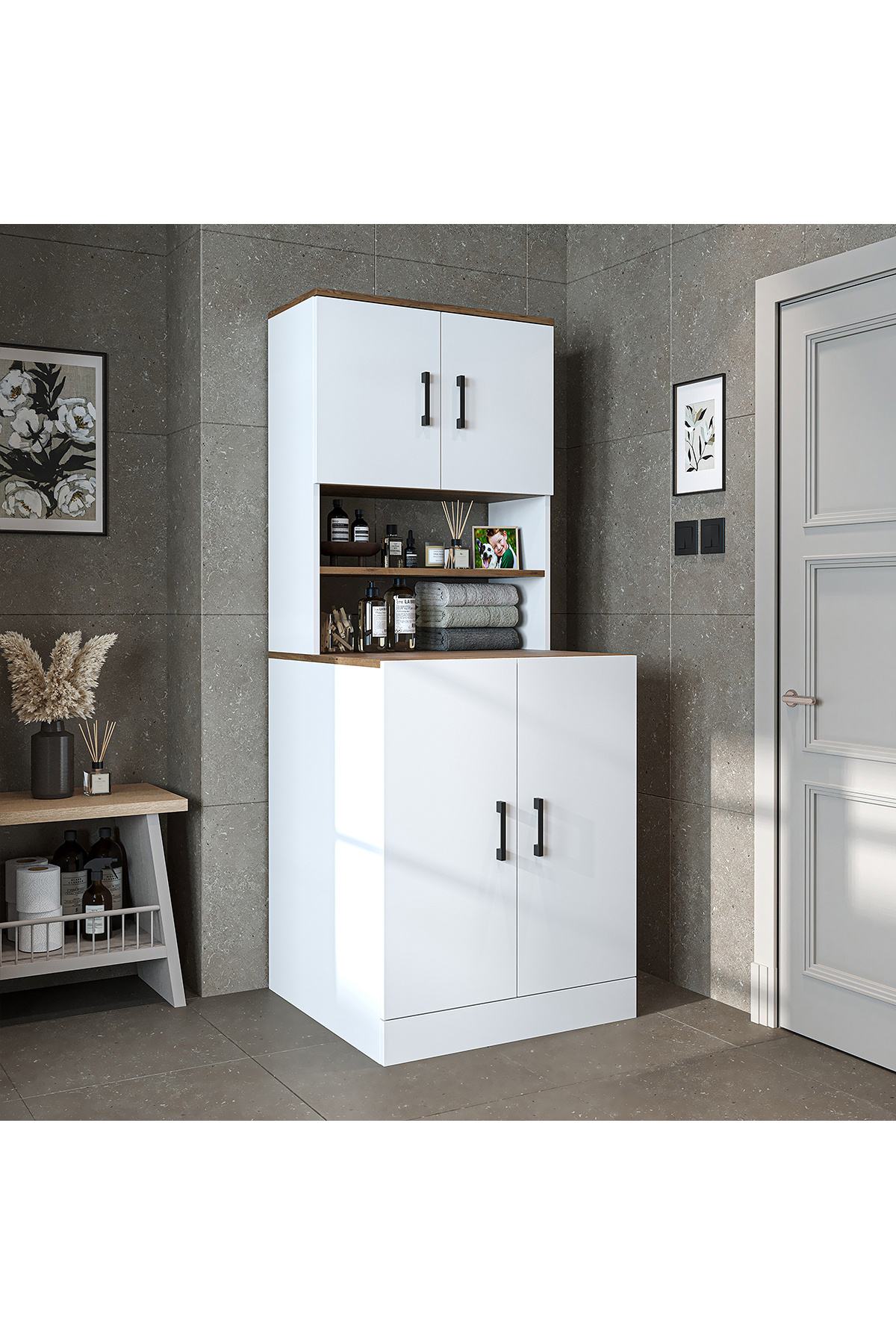 Çamaşır-Kurutma Makinesi Dolabı Kapaklı Banyo Dolabı