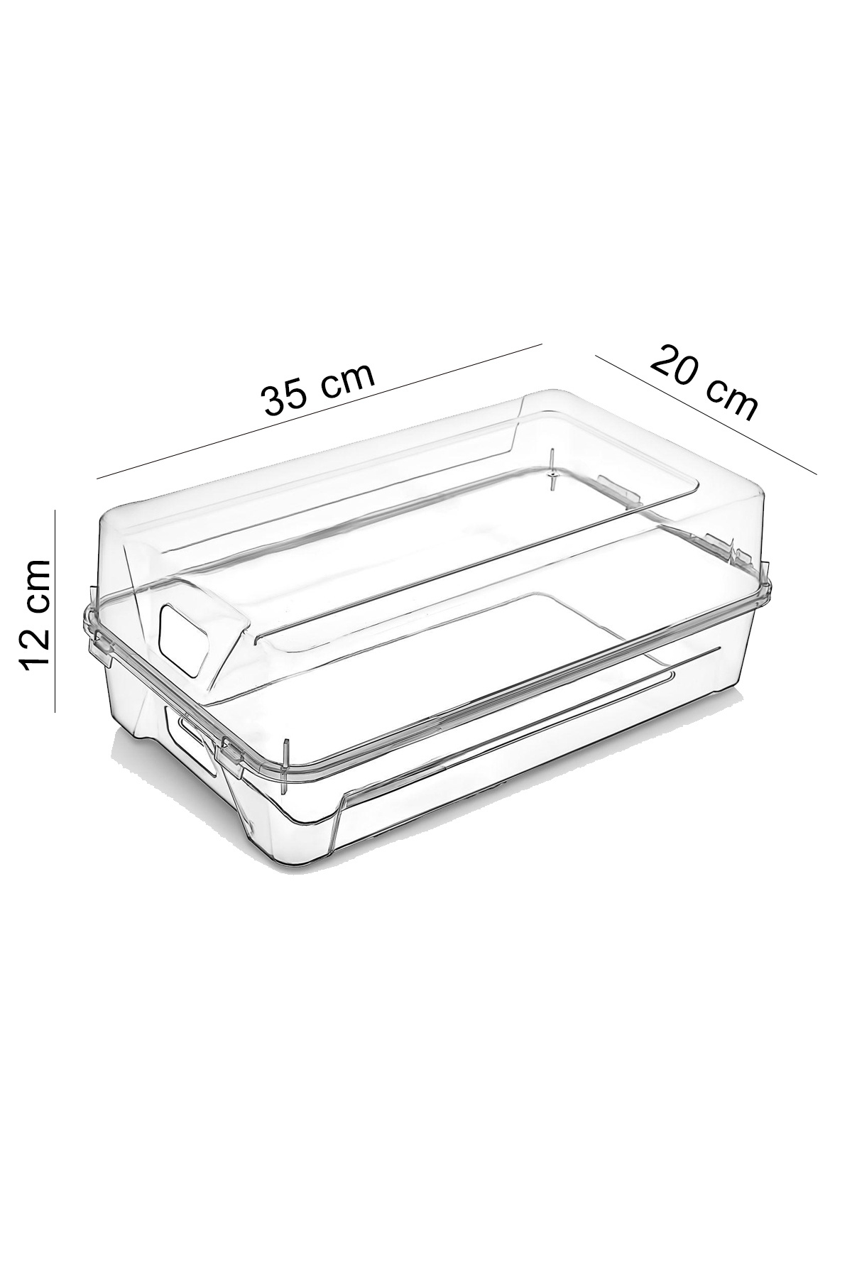 Ölçüler dış taraftan: uzunluk 35 cm, en 20 cm, yükseklik 12 cm dir.