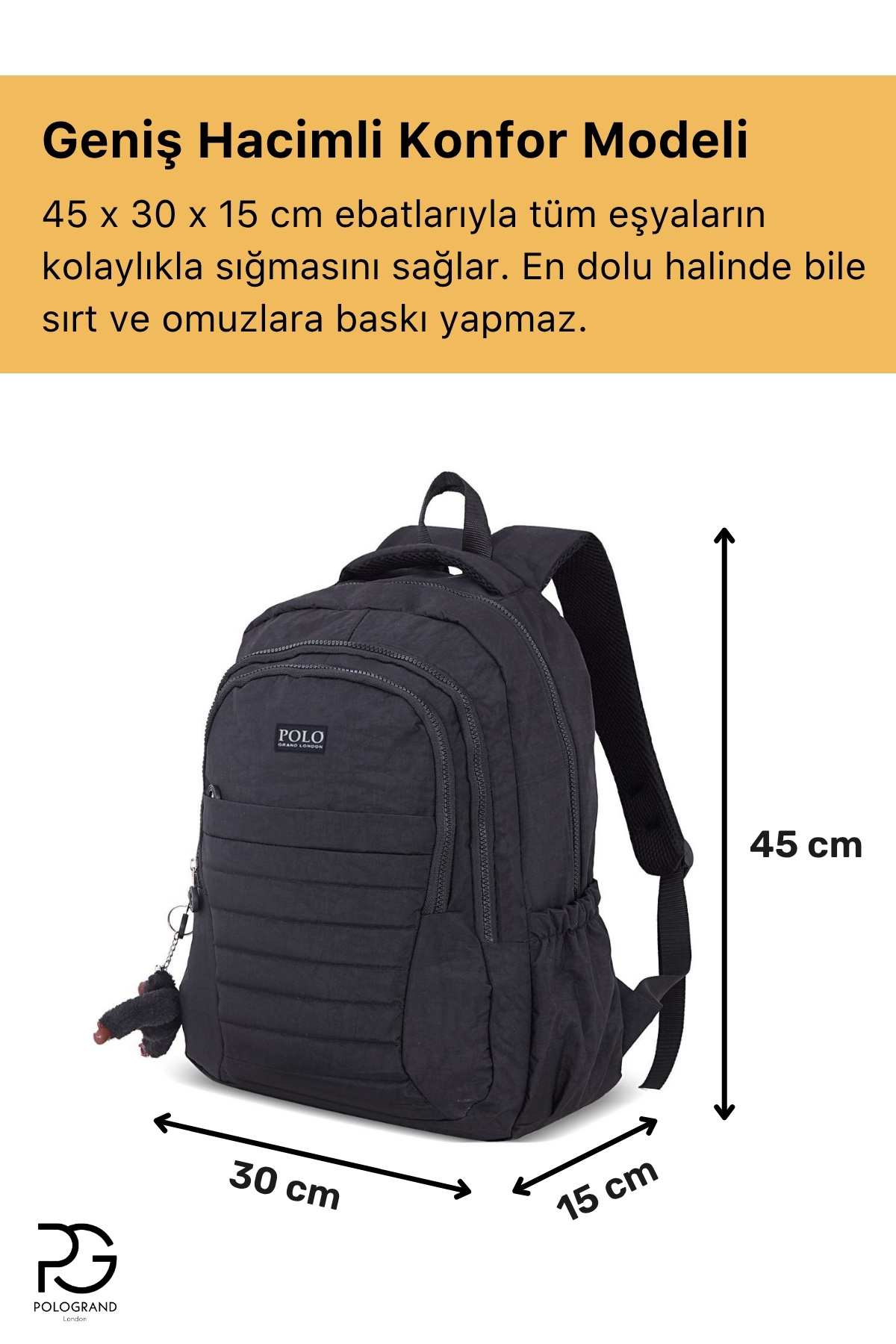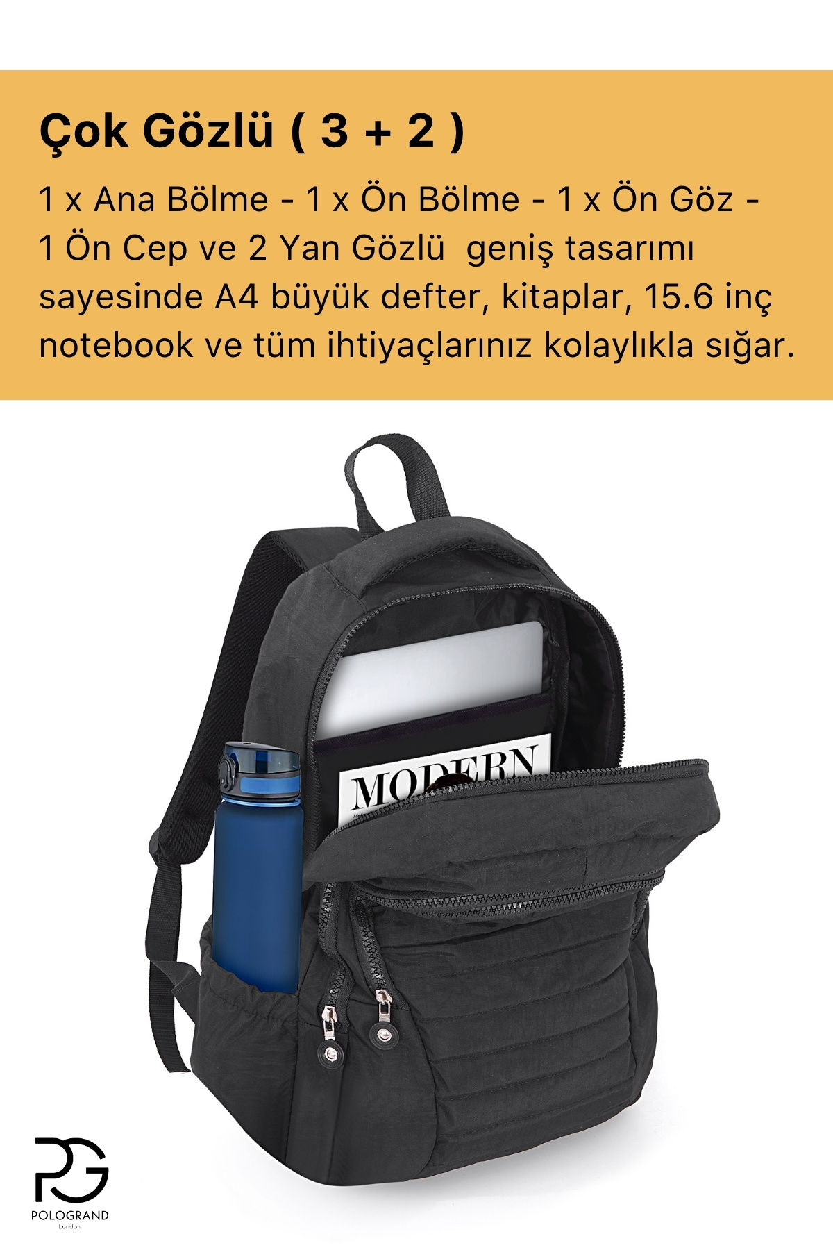 Orijinal POLOGRAND London Premium Konfor Modeli Çok Gözlü Unisex Okul Sırt Çantası