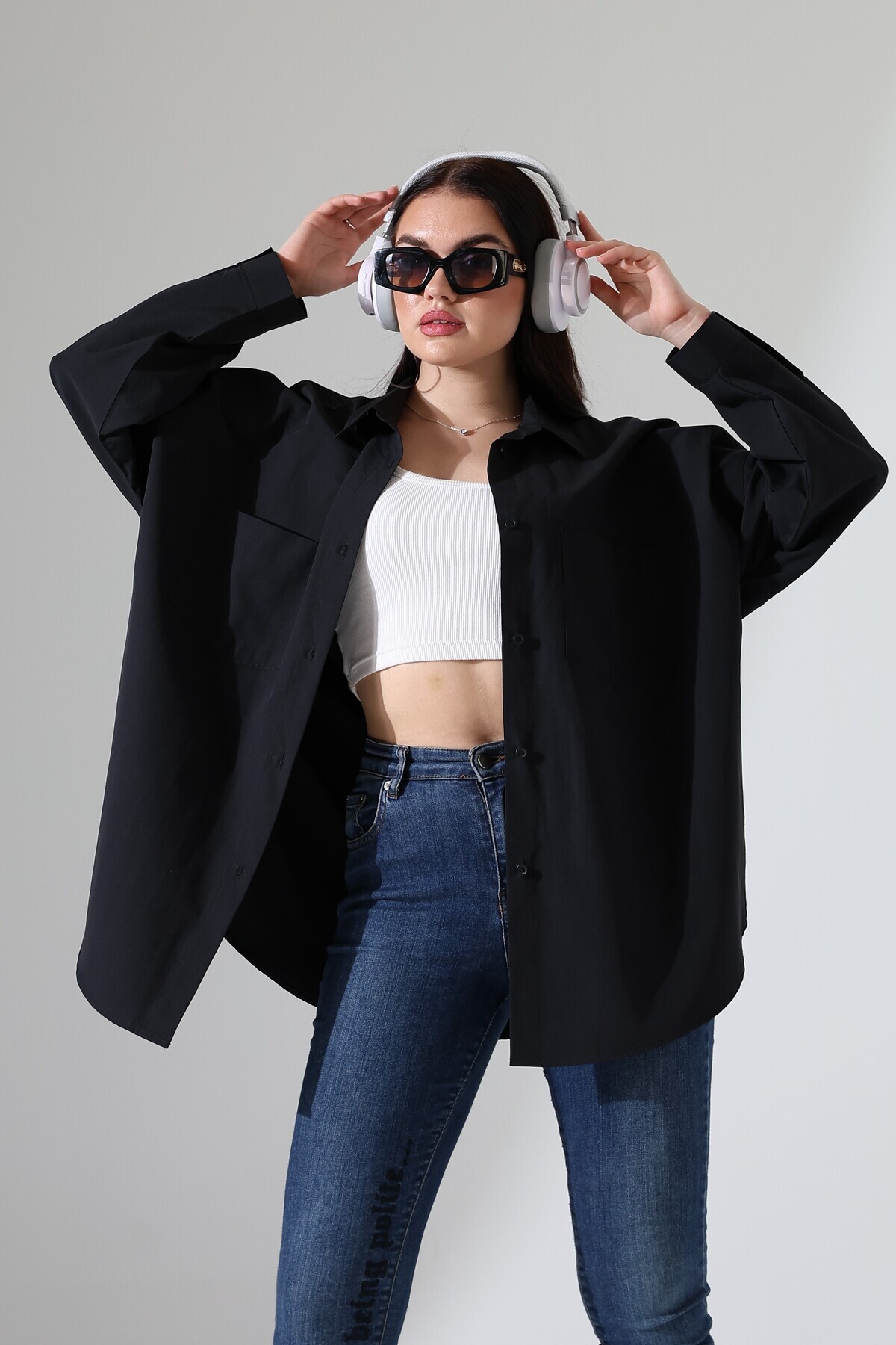 - Rahat kesimi ile günlük kullanıma uygun, oversize poplin tunik gömlek.