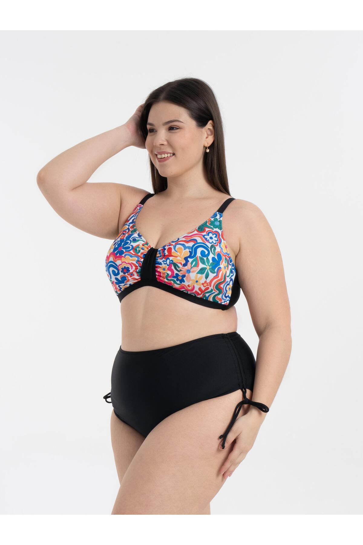 Aquaviva Kadın Büyük Beden Siyah Renkli Çiçek Desen Katrina Toparlayıcı Yüksek Bel Bikini Takımı
