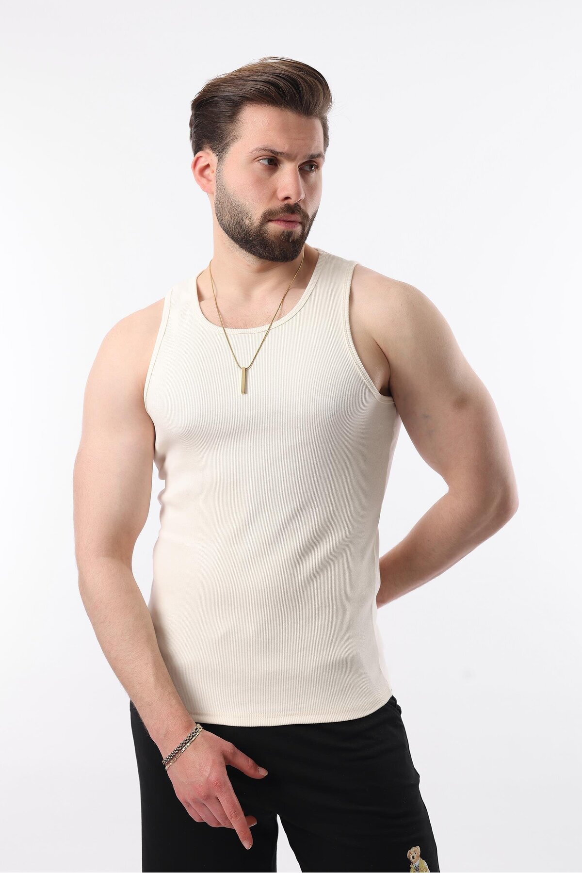Ekru Erkek Ribana Pamuklu Likralı & Atlet- 2505