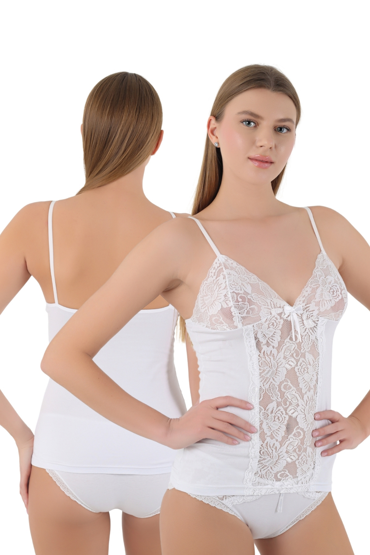 Kadın İp Askılı Dantelli Gecelik & Atlet Külot Takımı – Zarafet ve Konforun