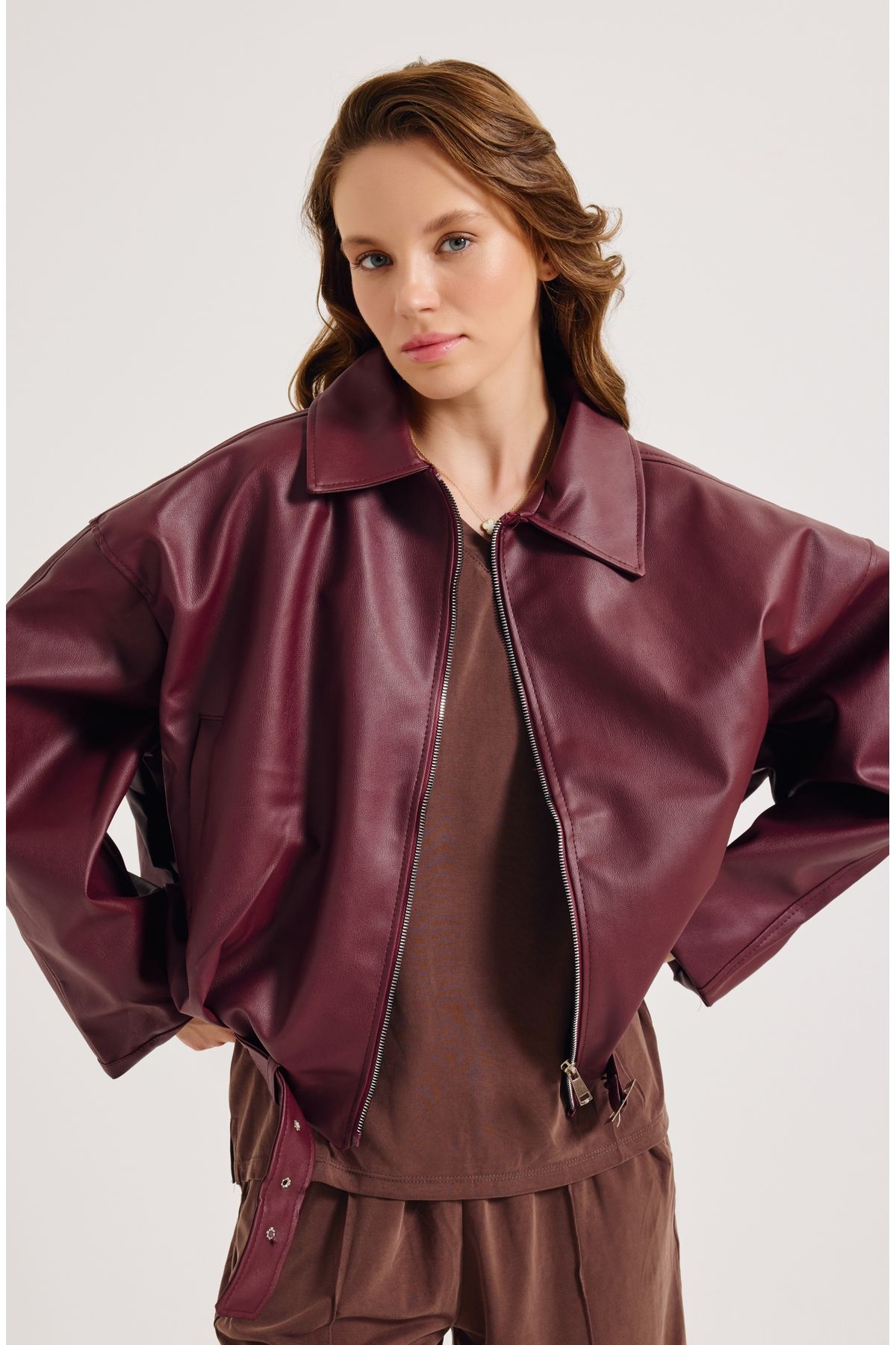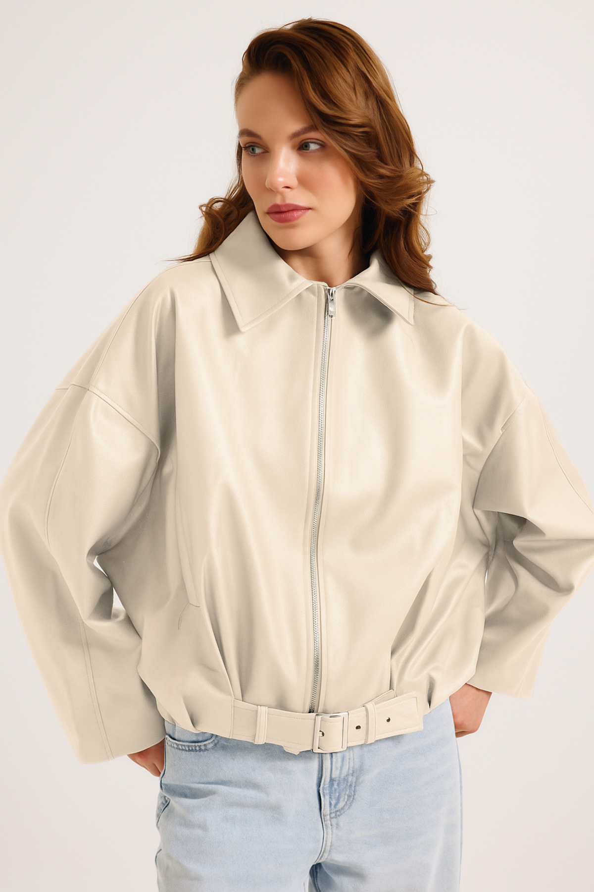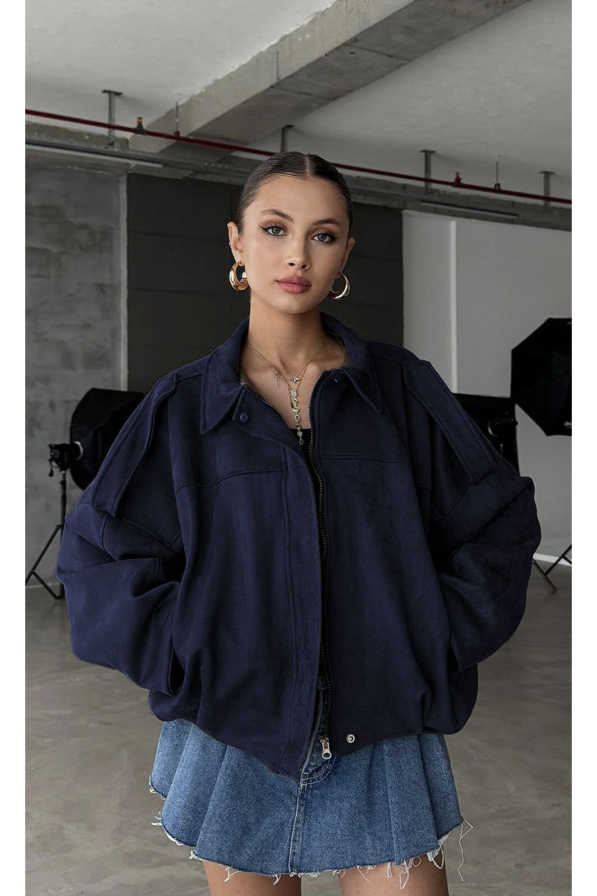 Yeni Sezon Suni Oversize Bomber Deri Ceket