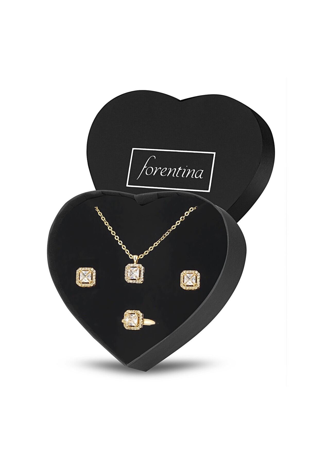 Yapısı: BijuteriZincir Uzunluğu: 42 CmMaden Rengi: SarıTaş Rengi : BeyazKüpe : Baget KüpeYüzük : Alttan Her parmağa göre ayarlanabilirTakı setleri, birçok kadının giyim tarzını tamamlayan popüler aksesuarlardan biridir.