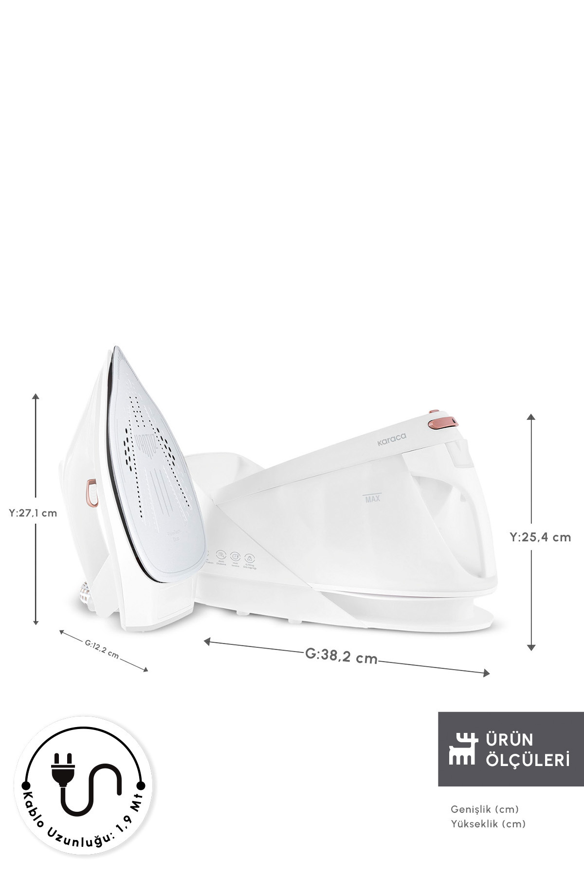 Karaca Vantuz Steammaster Buhar Kazanlı Ütü White Rose