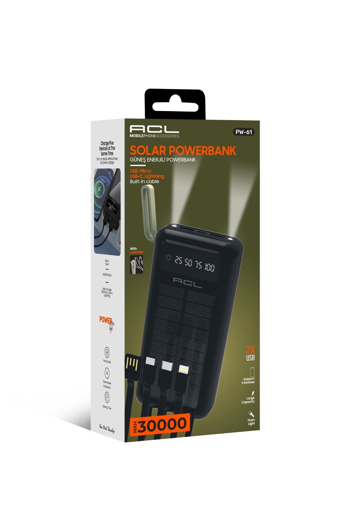Dahili LED ekran üzerinden şarj durumunu kontrol edebilirsiniz.30.000 mAh Solar Enerjili Powerbank Usb Şarj Kablosu Kullanım Kılavuzu